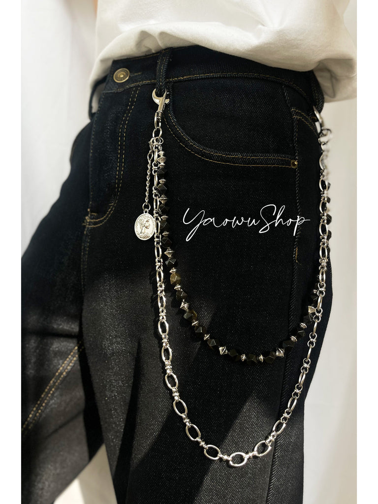 Discover the perfect fusion of industrial edge and natural elegance with our striking Stone Wallet Chain, a masterfully crafted accessory that balances bold statement-making with versatile wearability. This exquisite Double Wallet Chain features a sophisticated two-layer design, combining a dynamic 63cm long chain of interlocking silver-toned alloy rings in a unique large-within-small configuration, paired with a refined 53cm short chain of genuine white obsidian stones alternating with stainless steel geometric beads. This versatile Women Wallet Chain creates a captivating contrast between industrial strength and organic beauty, offering a statement piece that transitions effortlessly from daytime professionalism to evening edge.