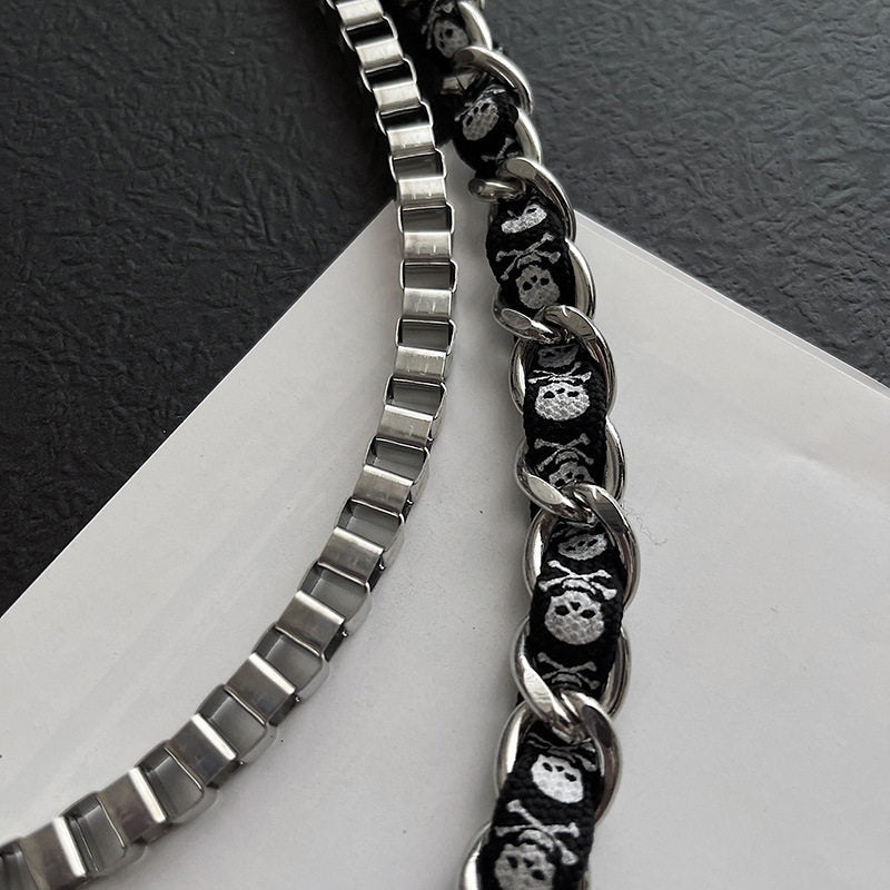 Double Link Wallet Chain | Skull & Canvas Hybrid Layered Chain