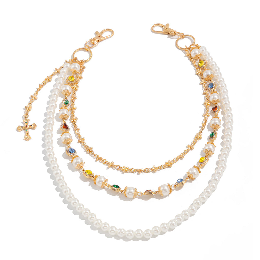 Gold Womens Wallet Chain Pearl Wallet Chain for Women Triple Ball Wallet Chain