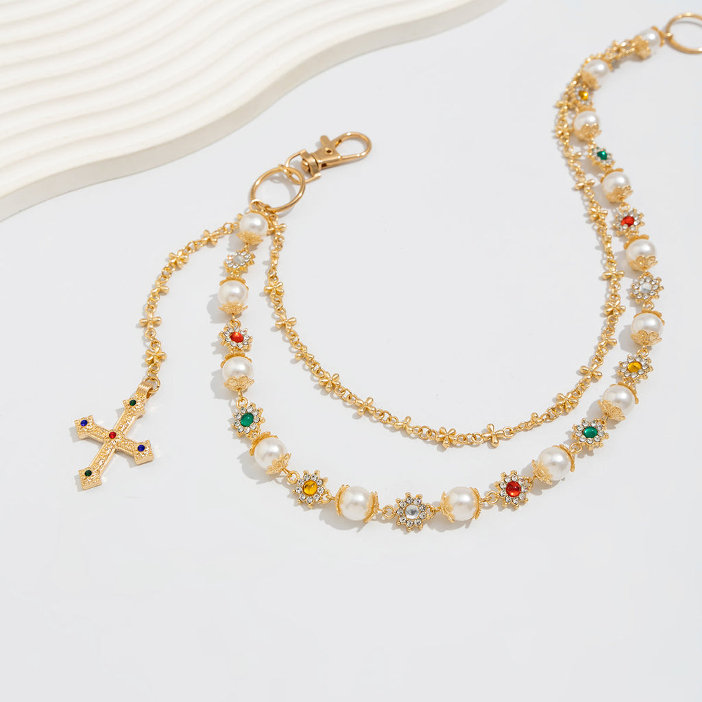 Design: Pearl Wallet Chain for Women Gold Wallet Chain Womens Wallet Chain with Cross