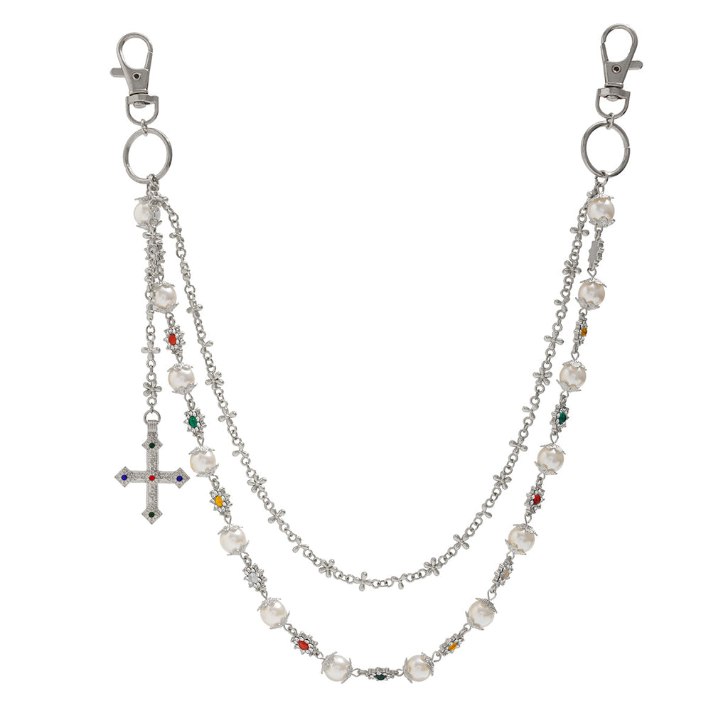 The beauty of this Gold Wallet Chain lies in its ability to adapt to different styles and occasions. Whether you're dressing up for a special event or adding a touch of elegance to your daily wardrobe, the pearl elements keep it soft and wearable, while the cross pendant adds personal meaning. This Double Wallet Chain proves that you can embrace both trend-forward style and timeless elegance in one beautiful accessory.