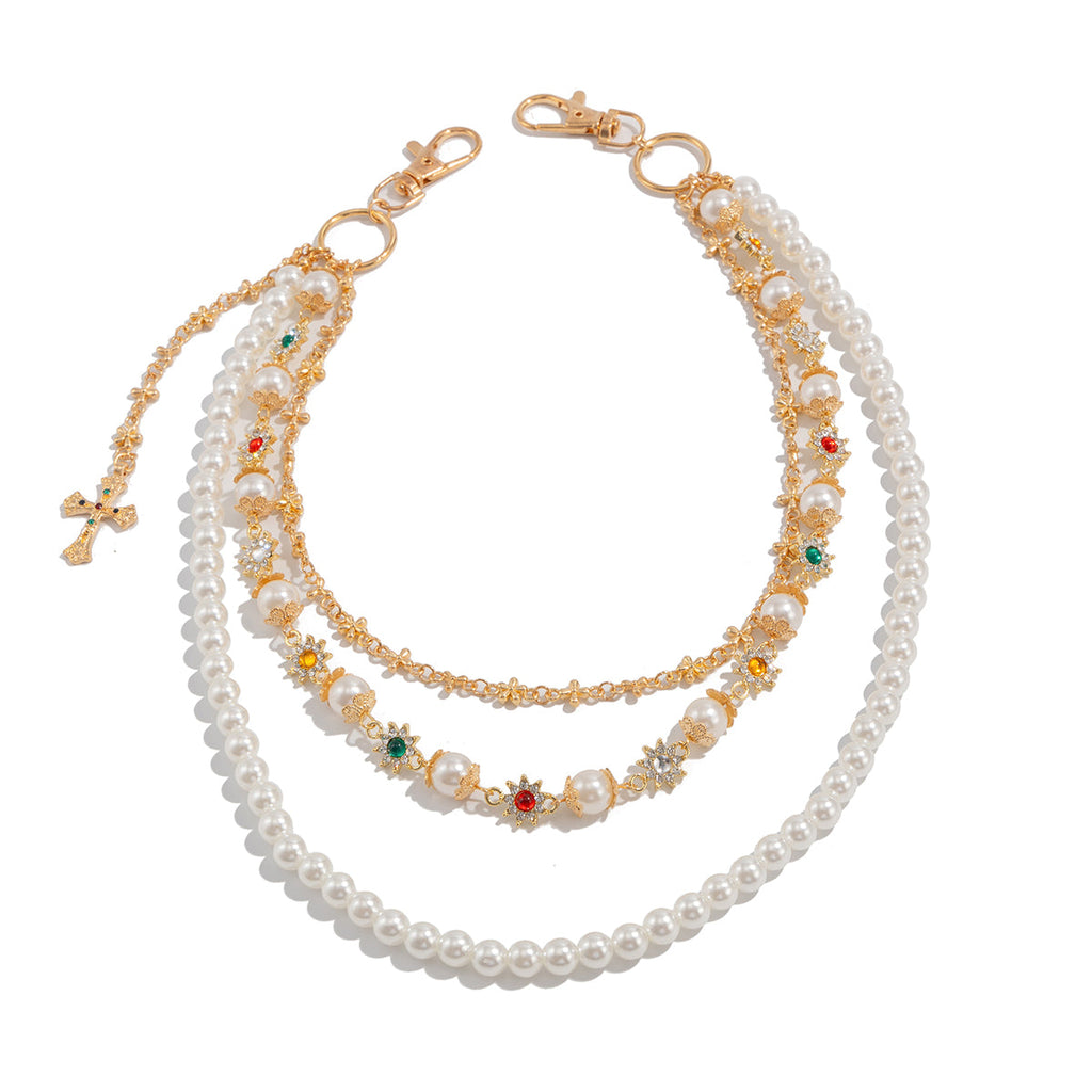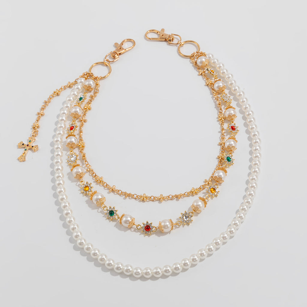 Pearl Wallet Chain for Women Triple Wallet Chain Gold Womens Ball Wallet Chain