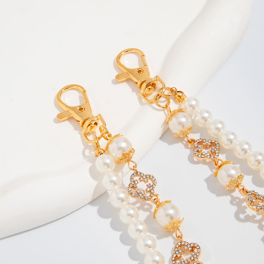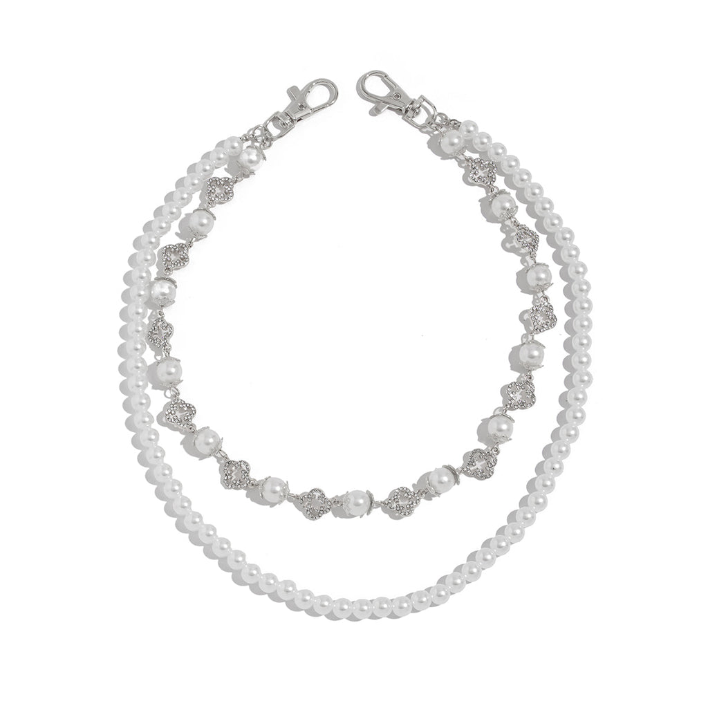 Style: Pearl Wallet Chain Womens Flower Double Wallet Chain Beaded