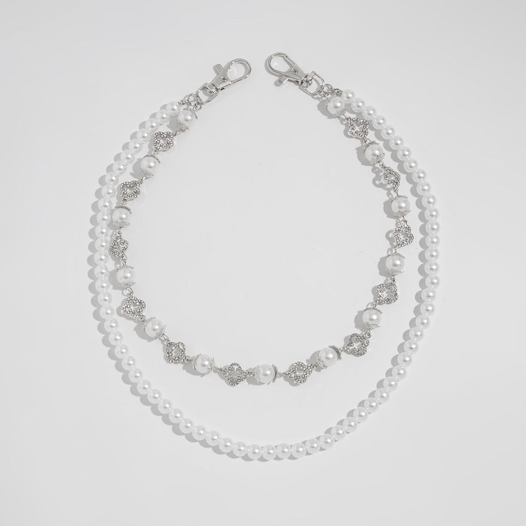 Discover the perfect fusion of timeless elegance and modern craftsmanship with our exquisite Pearl Wallet Chain, a beautifully designed accessory that blends classic charm with contemporary artistry. This stunning Double Wallet Chain features a graceful 56cm strand of high-quality faux pearls complemented by a 47cm alloy chain adorned with intricate openwork floral beads accented with faux diamonds and gemstones, all artfully interwoven with pearls. Available in two versatile color options—silver and gold—this sophisticated Women Wallet Chain offers a perfect balance of delicate beauty and refined strength, making it the ideal choice for the fashion-forward woman who appreciates both romance and individuality.