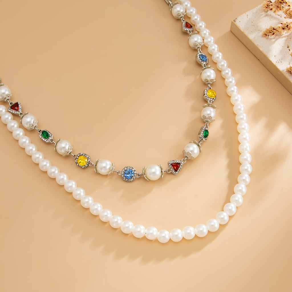 Style Tip: For a balanced look, wear the longer pearl strand as the base and let the shorter geometric-accented chain layer over it for maximum visual impact.