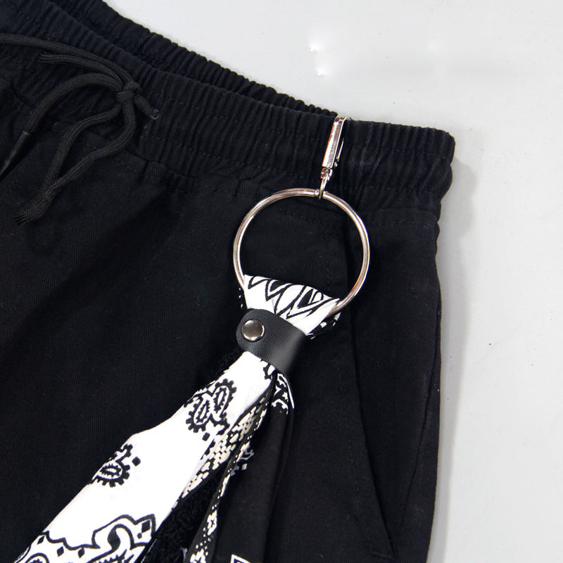 White&Black Paisley Bandana Pants Chain Kerchief Trousers Chain Biker Headscarf Jeans Chain Pants Chain