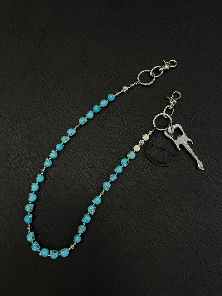 Skull Head Wallet Chain - Turquoise Stone & Electric Guitar Charm