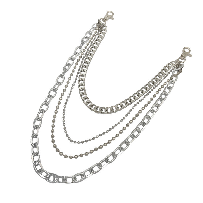 Style: Cool Mens Silver Four Layers Pants Chains Silver Cool Quadruple Biker Wallet Chain For Men