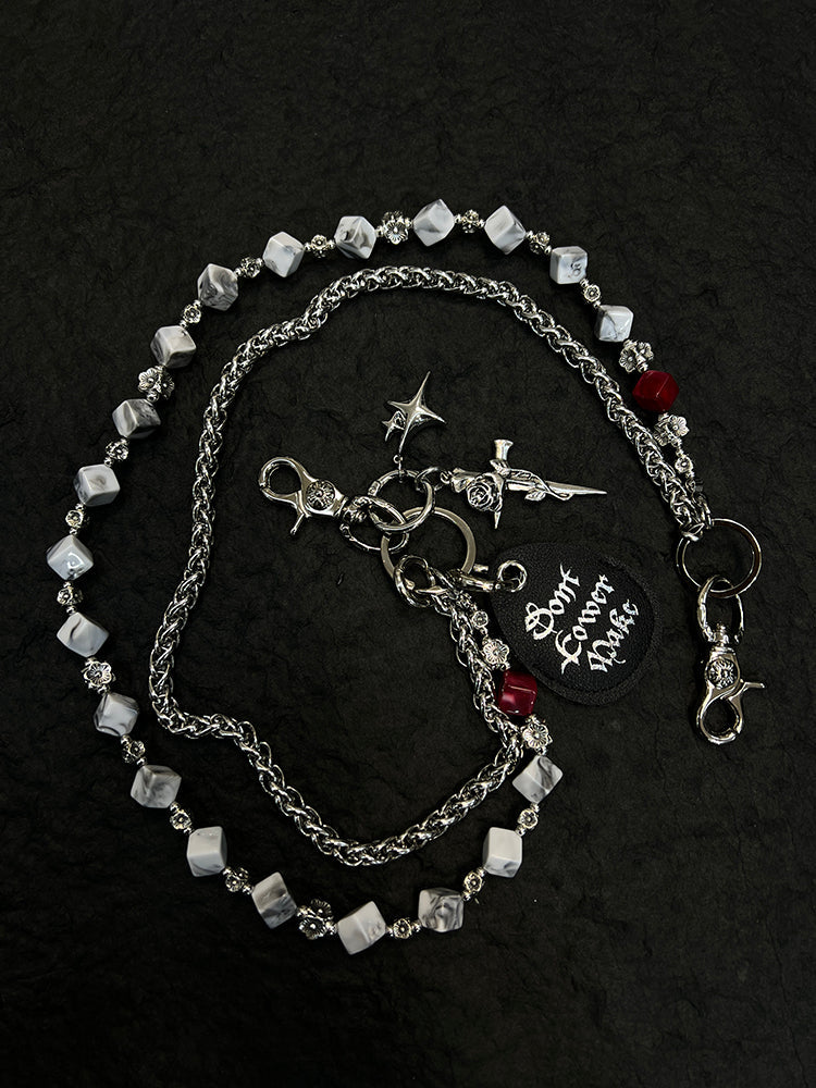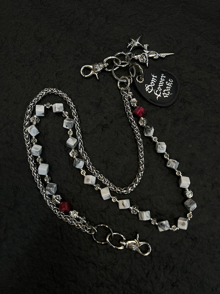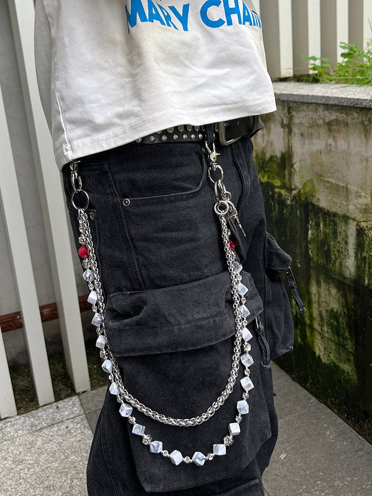 Design: Cross Double Wallet Chain Cube Beaded Pants Chain Double Pants Chain