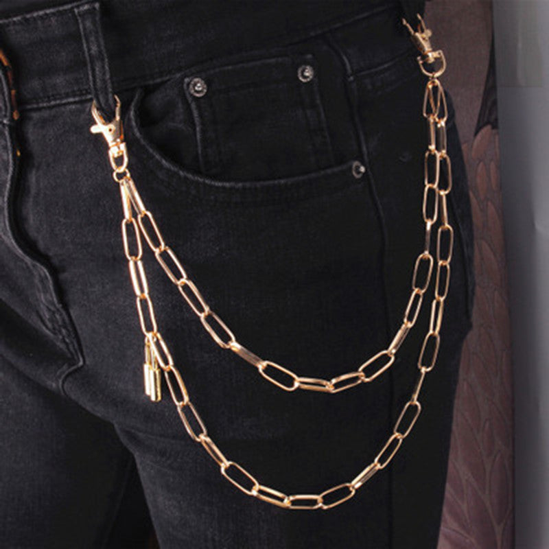 Cute Mens Silver Double Layers Pants Chains With Lock Silver Double Biker Wallet Chain For Women