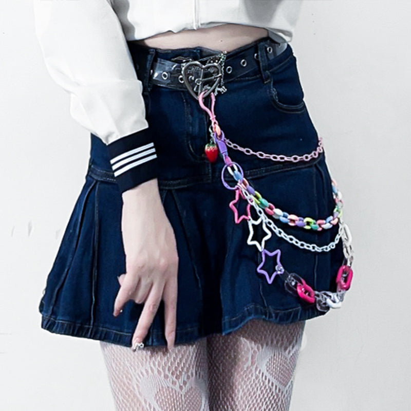 Design: Cute Womens Fluorescein Plastics Jeans Chain Colorful Light Double Layers Panties Chains For Women