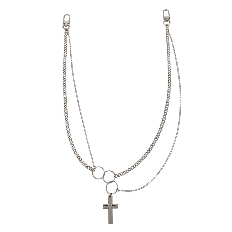 Design: Unique Silver Mens Cross Wallet Chain Double Biker Wallet Chain Double Necklace Chain For Women