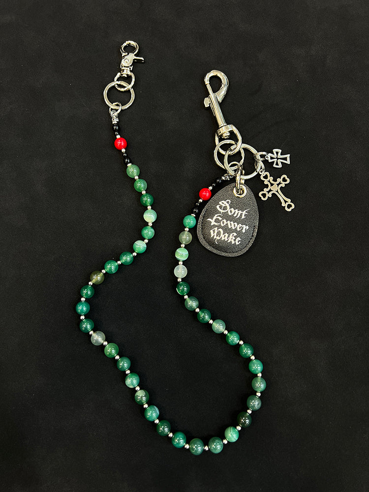 Style: Green Ball Wallet Chain Ball Pants Chain Jade Stone Beaded Wallet Chain Bead Wallet Chain