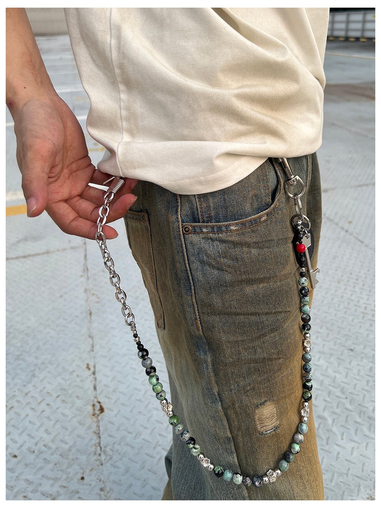 Style: Ball Pants Chain Ball Wallet Chain Stone Beaded Wallet Chain Long Bead Wallet Chain