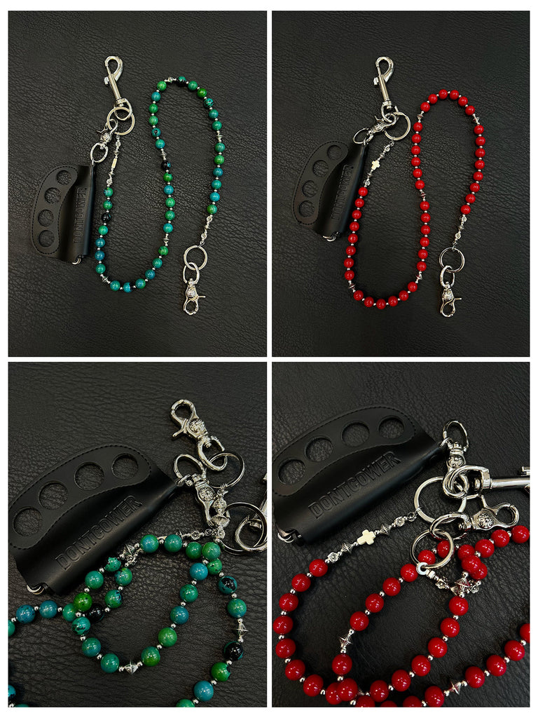 Style: Red Ball Wallet Chain Ball Pants Chain Agate Beaded Wallet Chain Bead Wallet Chain