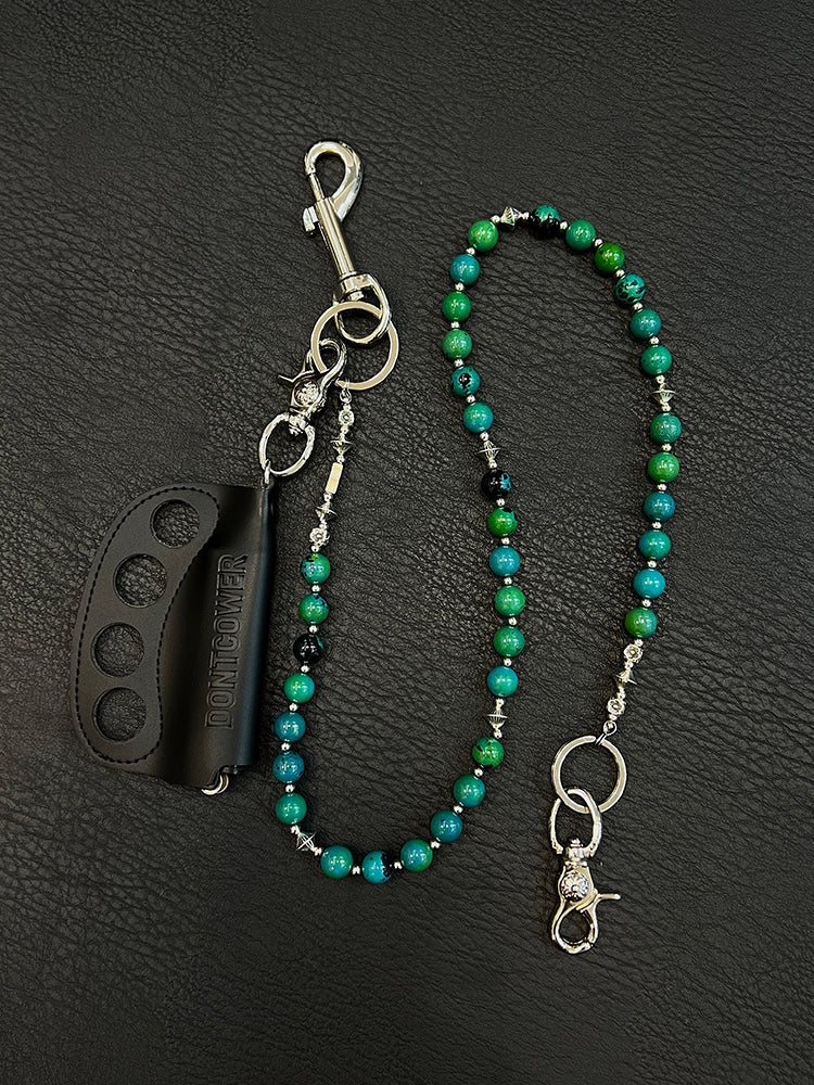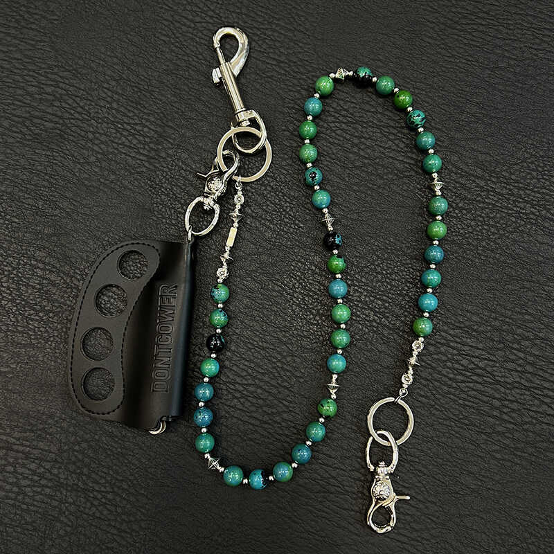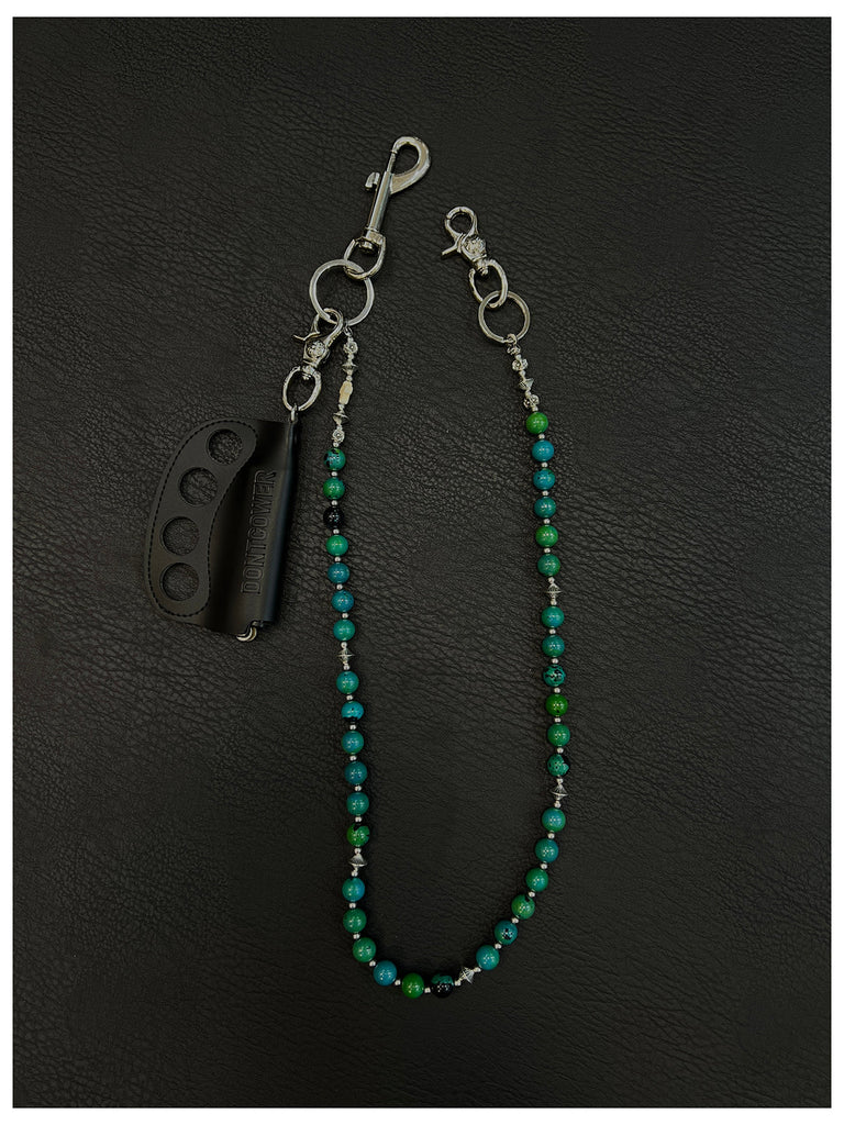 Embrace this extraordinary beaded Wallet Chain that celebrates the fusion of natural elegance and urban rebellion. This isn't just functional jewelry �it's wearable art that reflects your distinctive taste and fearless style. The agate stones symbolize grounding energy, while the knuckles pendant represents strength, creating a powerful accessory that speaks to your unique identity.