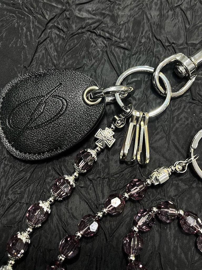 Introducing a truly unique accessory that redefines wallet chain design - our extraordinary Beaded Wallet Chain. This 78cm masterpiece breaks from tradition by replacing common metal materials with exquisite multi-faceted crystal beads in a sleek spindle shape. What makes this Beaded Pants Chain particularly special are the intricately styled beads interspersed throughout - featuring crosses, coins, and medallions that add distinctive character and symbolism. Available in two captivating colors, Purple and Green, this innovative chain brings a fresh aesthetic to accessory design.