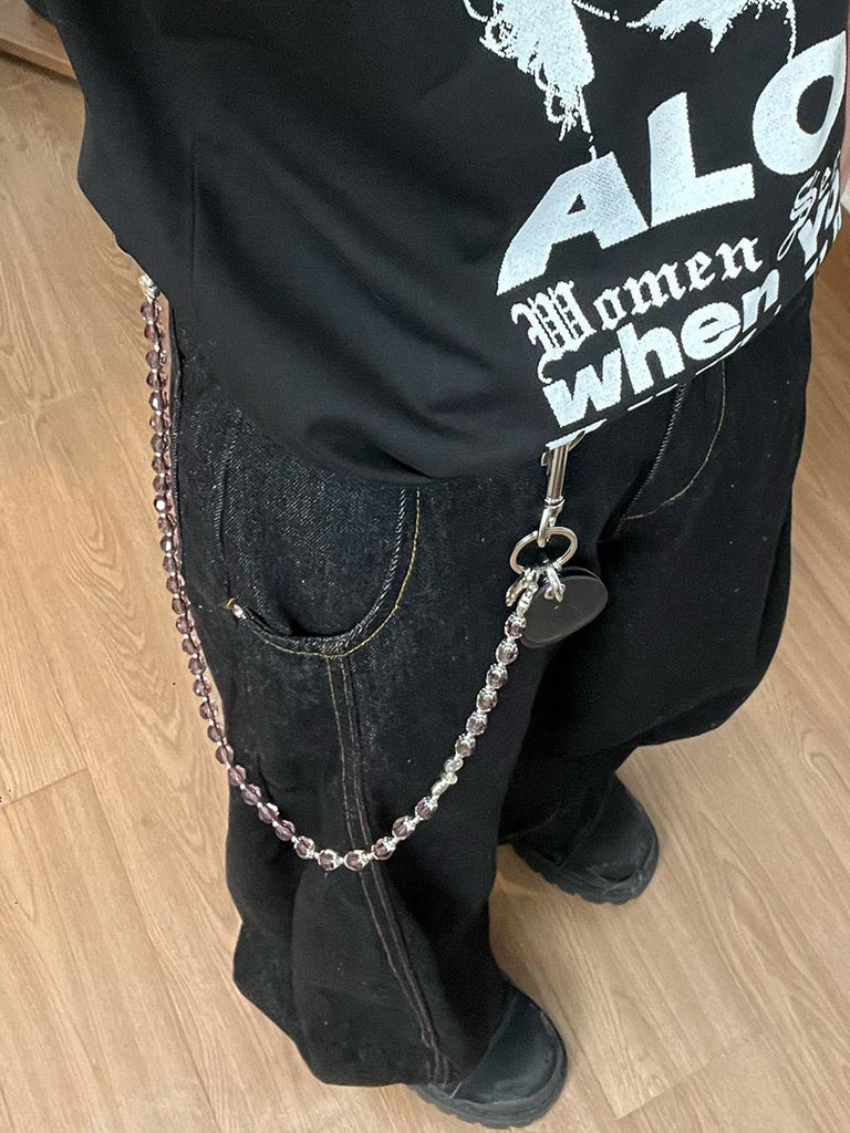 Style: Beaded Wallet Chain Long Beaded Pants Chain Crystal Bead Wallet Chain with Keychain