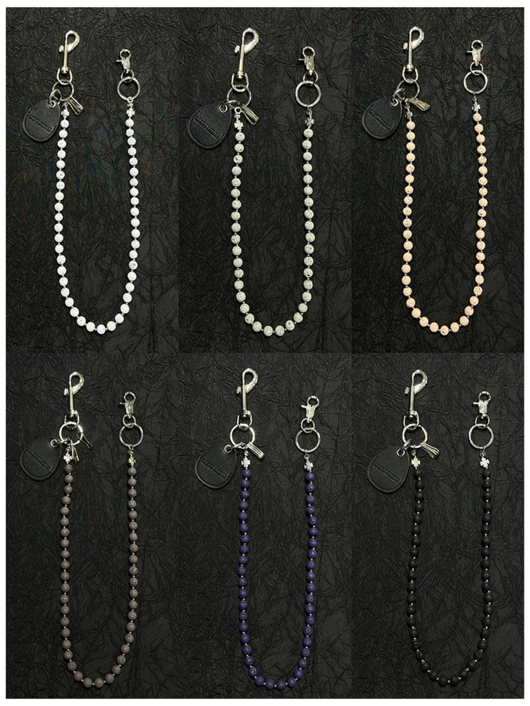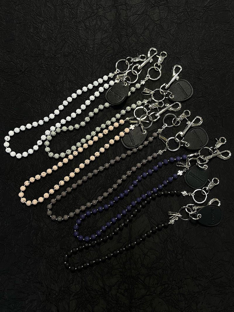 Whether you choose a bold hue for maximum impact or a subtle tone for daily wear, this beaded Wallet Chain adapts to your style while providing practical key management. The natural lavastone construction ensures durability and unique character, with each bead displaying subtle natural variations.