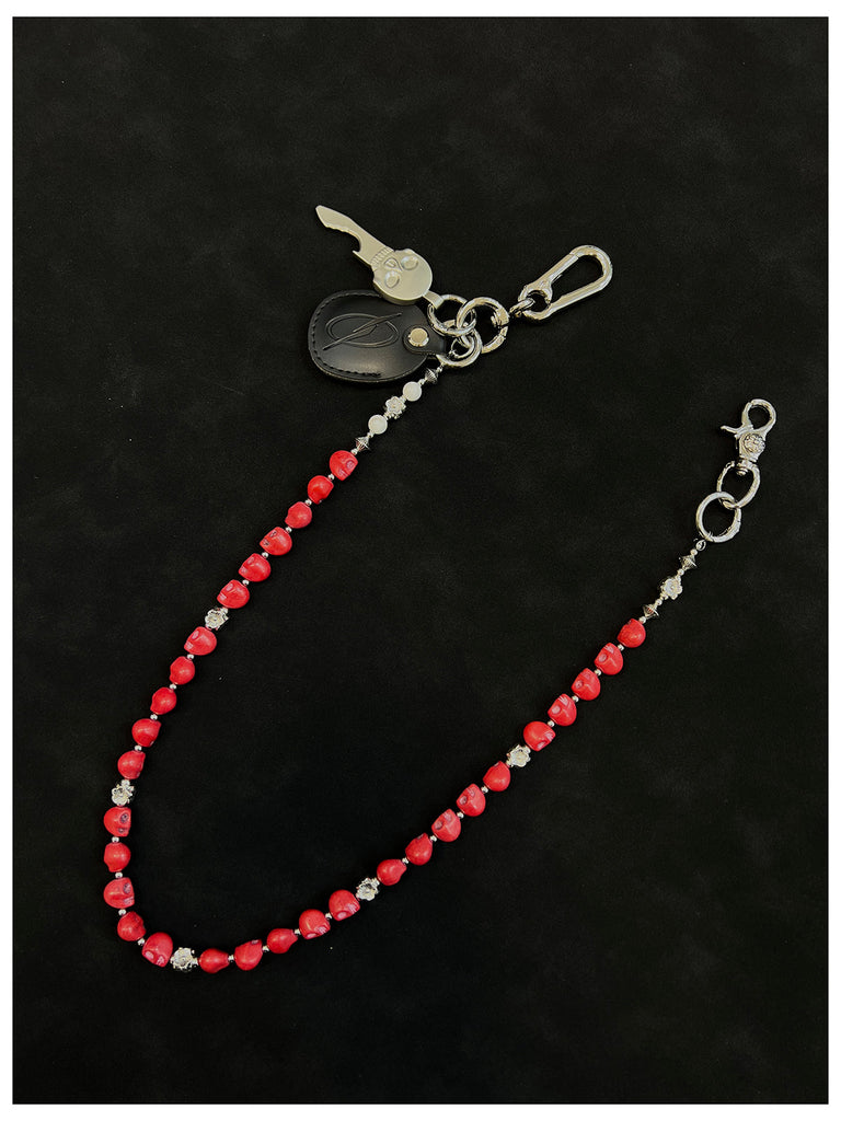 Unleash your bold side with our extraordinary Skull Head Wallet Chain, a statement piece that redefines alternative fashion. This 78cm chain features a striking design composed of meticulously carved red stone skull heads, artfully interspersed with alloy plum blossom beads. The pièce de résistance? A functional skull-shaped bottle opener attached to one end, making this Skull Wallet Chains collection both edgy and practical for social occasions.