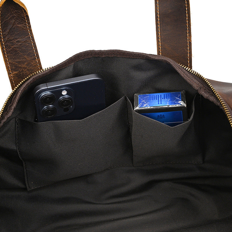 Brown Weekend Bag | Compact Leather Weekender for Men with Smart Storage