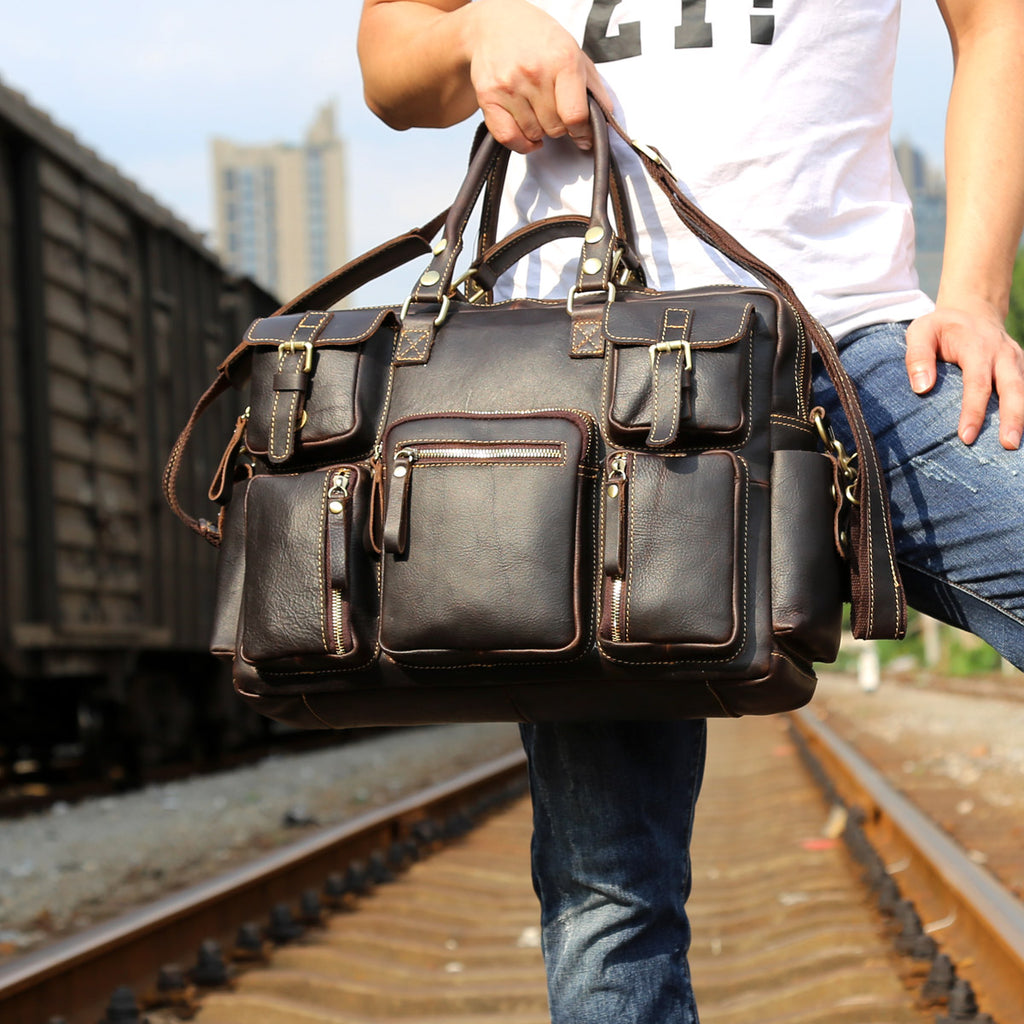Design: Genuine Leather Mens Cool Weekender Bag Travel Bag Duffle Bags Briefcase Messenger Bag for men