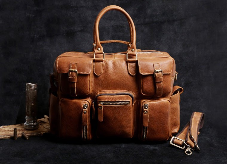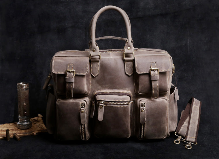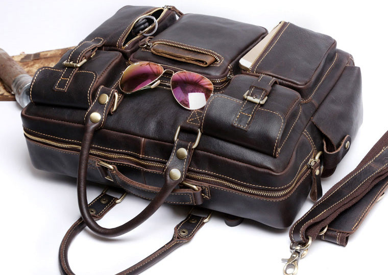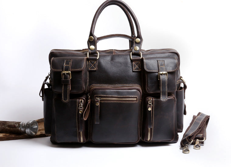 Style: Genuine Leather Mens Cool Weekender Bag Travel Bag Duffle Bags Briefcase Messenger Bag for men