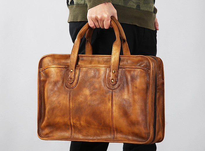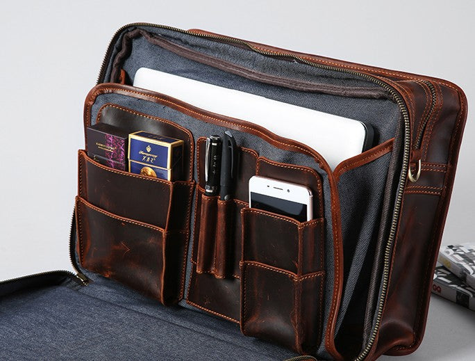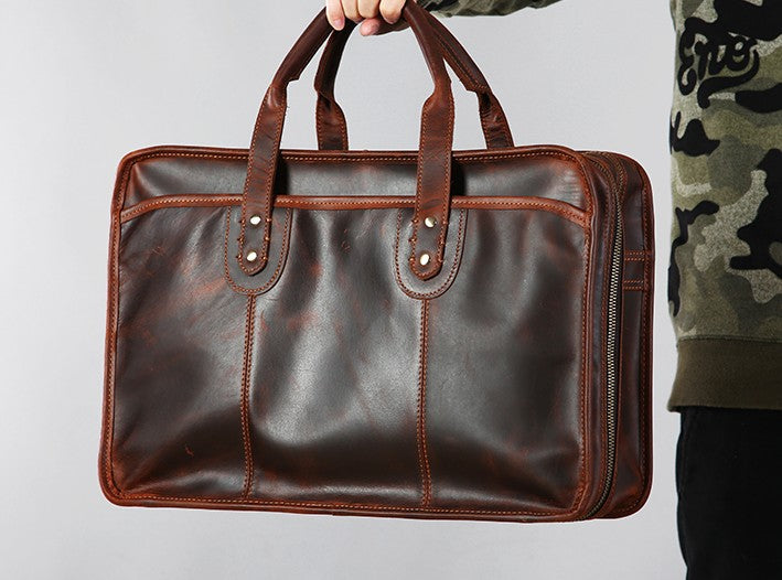Design: Genuine Leather Mens Large Travel Bag Cool Messenger Bag Shoulder Bag Laptop Bag Briefcase Weekender Bag for Men