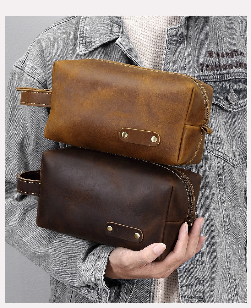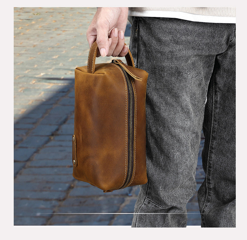 Style: Brown Leather Toiletry Bag Men's Brown Leather Toiletry Bag Full Grain Leather Toiletry Bag