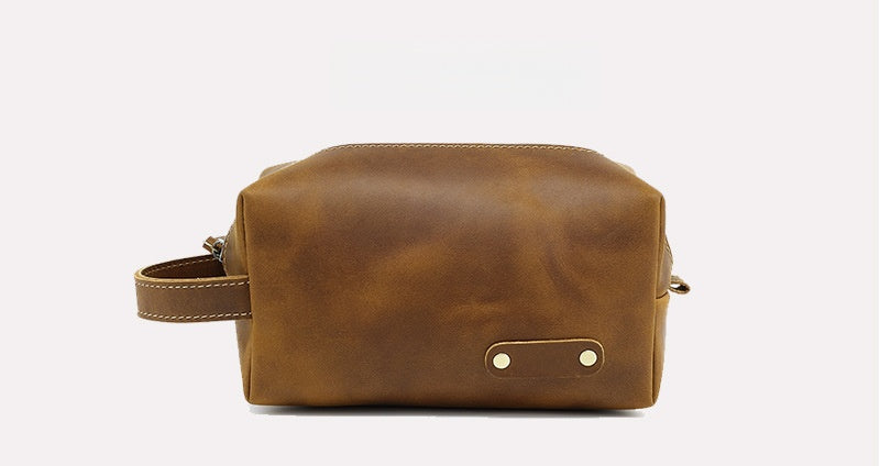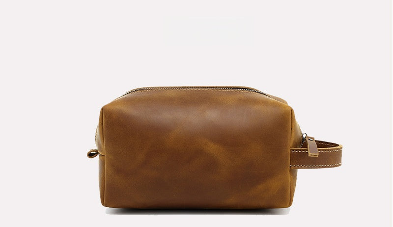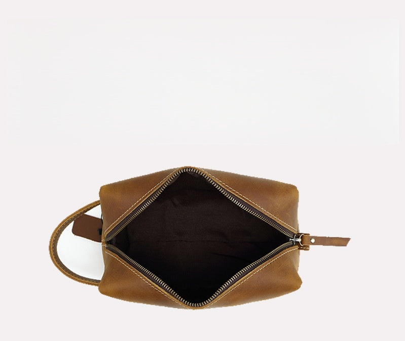 Brown Leather Toiletry Bag Men's | Full-Grain Leather Minimalist Design
