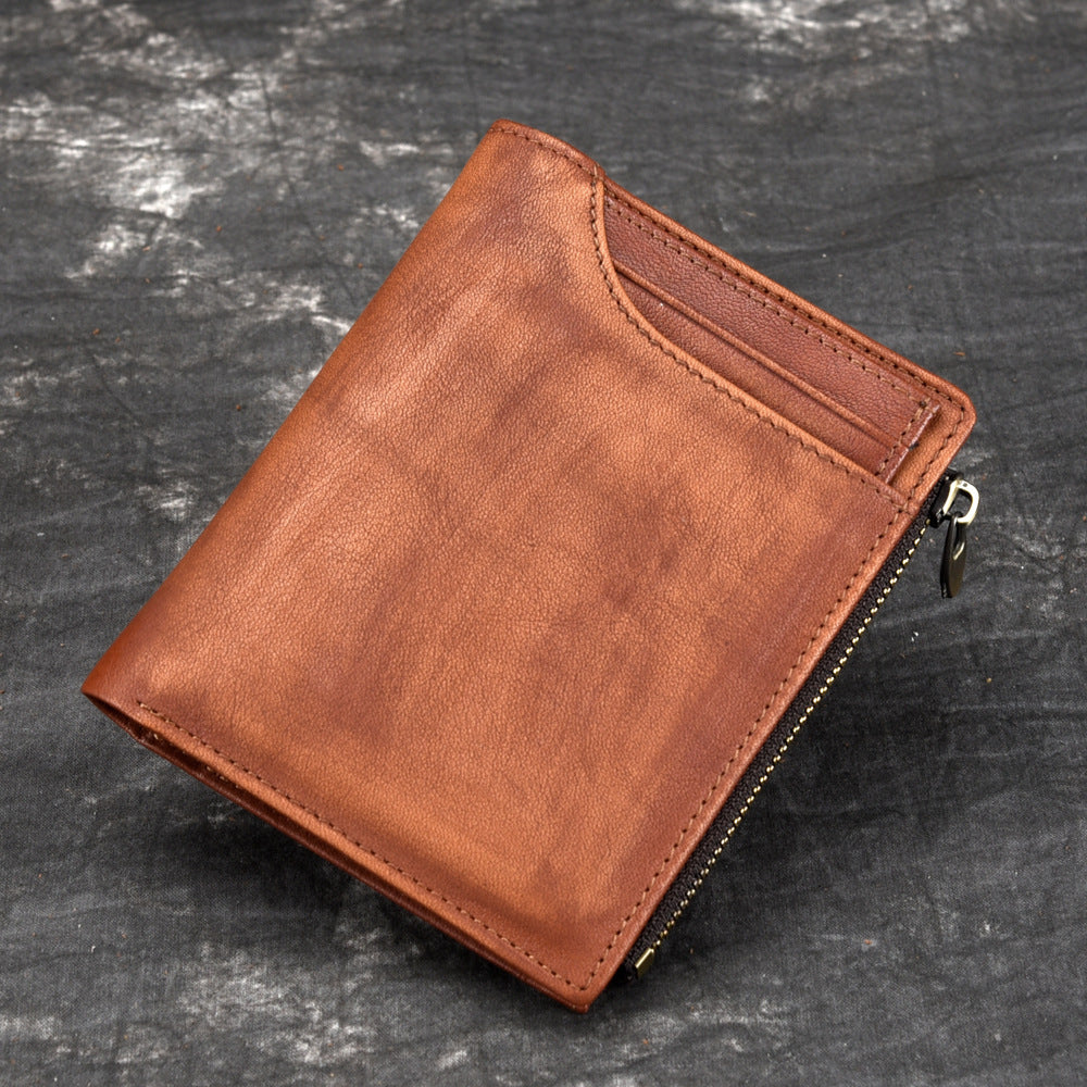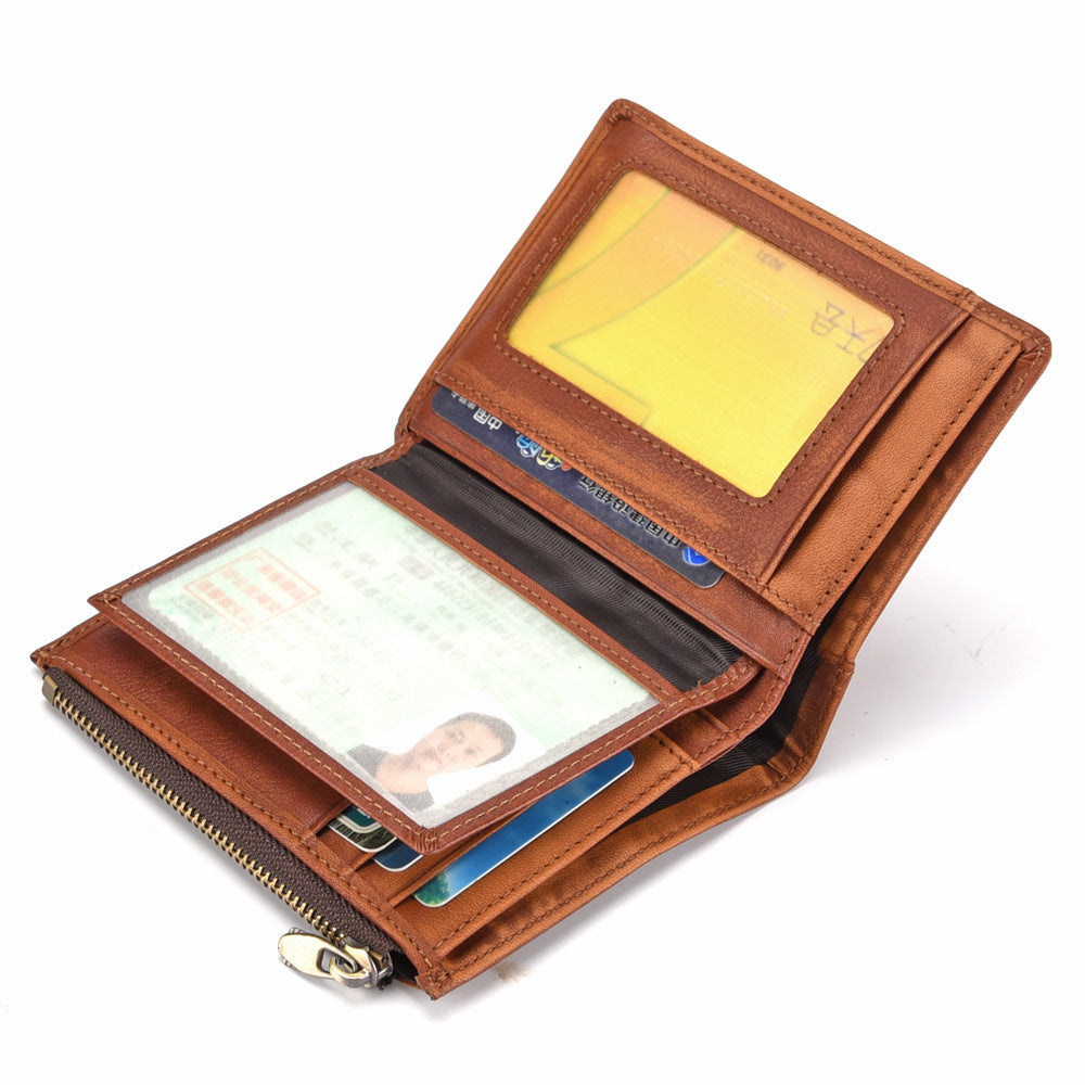 Design: Brown MENS LEATHER Bifold Wallet Short Wallet Card Wallet Dark Brown Coin Wallet FOR MEN