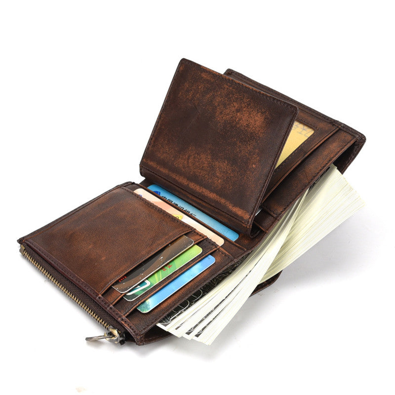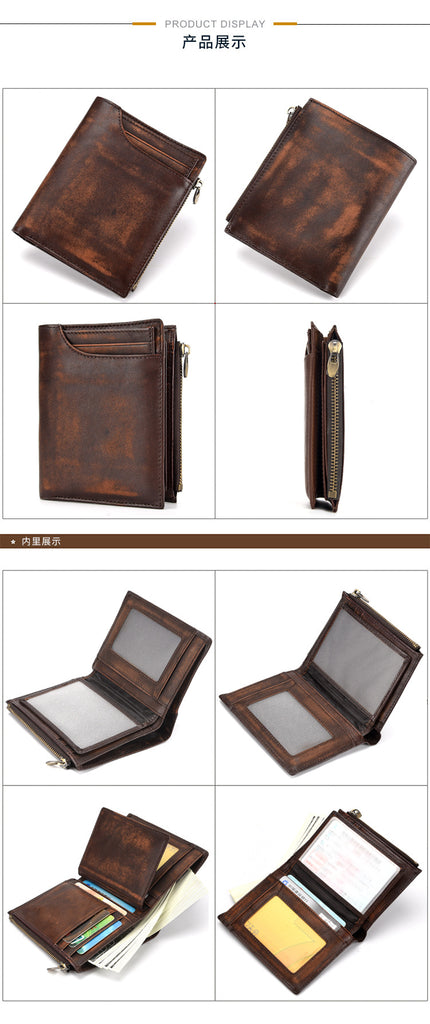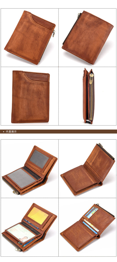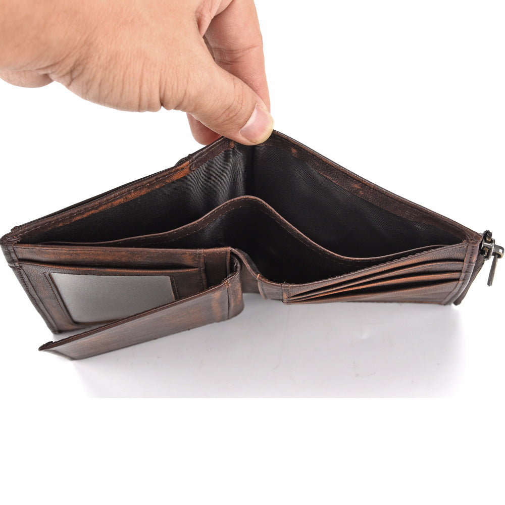 Style: Brown MENS LEATHER Bifold Wallet Short Wallet Card Wallet Dark Brown Coin Wallet FOR MEN