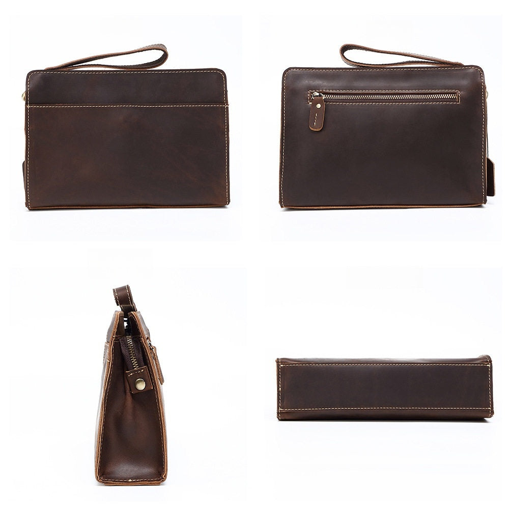 Design: Brown Leather Clutch Wristlet Large Men's Leather Clutch Purse