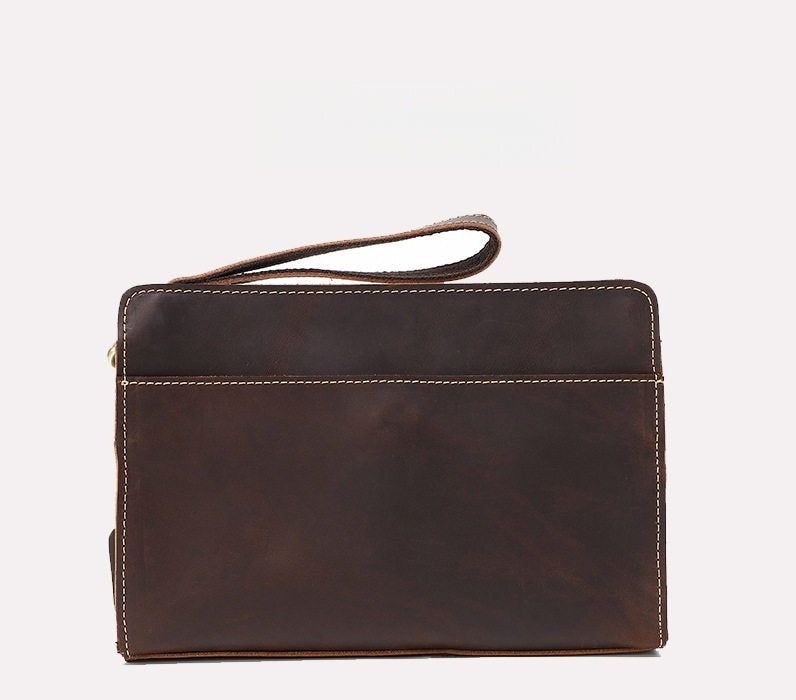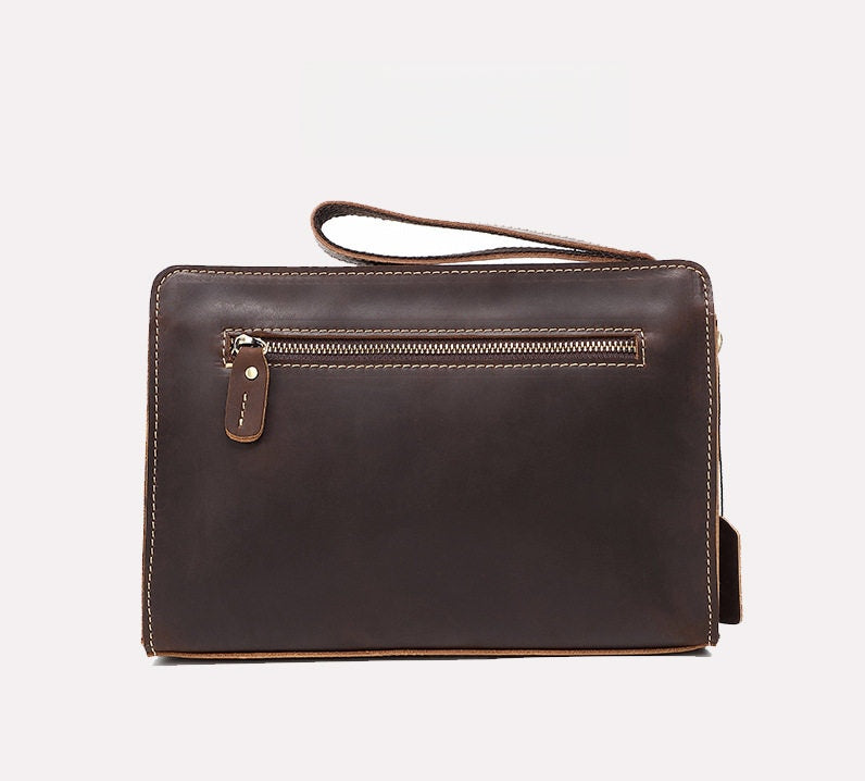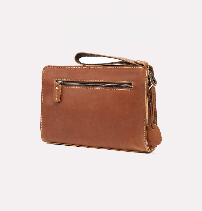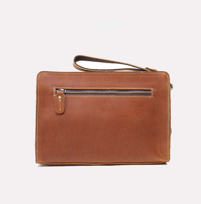 Engineered for organization and ease, this refined Men's Leather Clutch Purse features two main compartments, two secure zippered pockets, and a convenient side slot, ensuring everything from your tablet to your wallet has a dedicated place. The inclusion of a detachable hand strap provides flexible carrying options, allowing you to carry it as a sleek clutch or a secure hand-held folio. Whether you’re heading to a meeting, catching a flight, or navigating your daily routine, this bag is built to keep you organized in style.