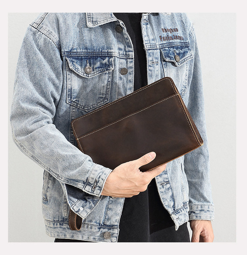Style: Brown Leather Clutch Wristlet Large Men's Leather Clutch Purse