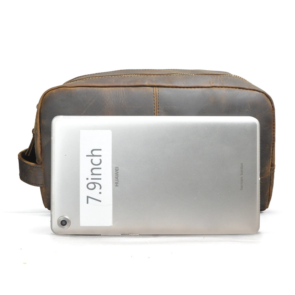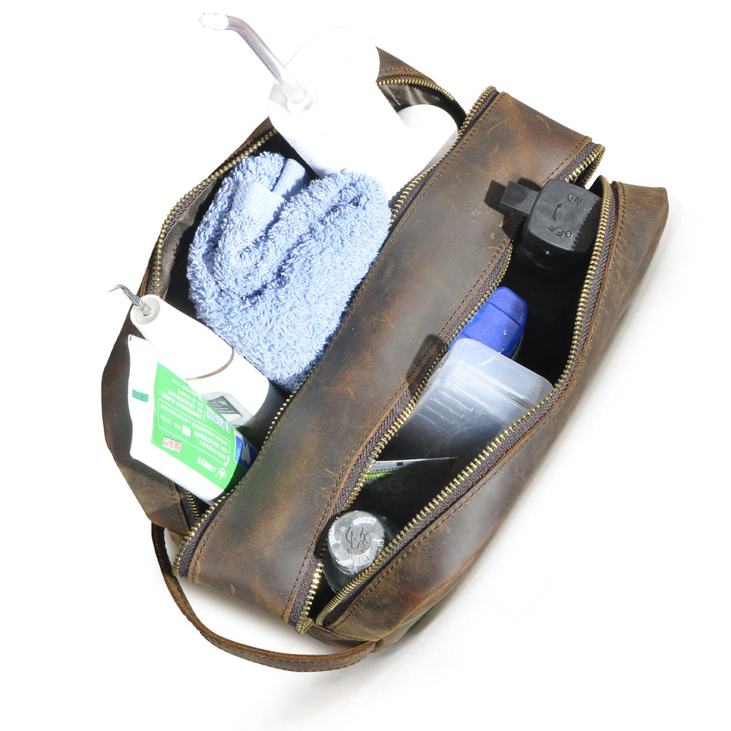 Brown Leather Toiletry Bag | Double Zipper Leather Toiletry Bag for Men
