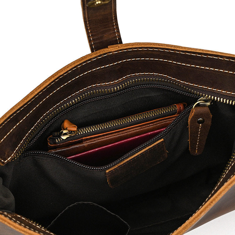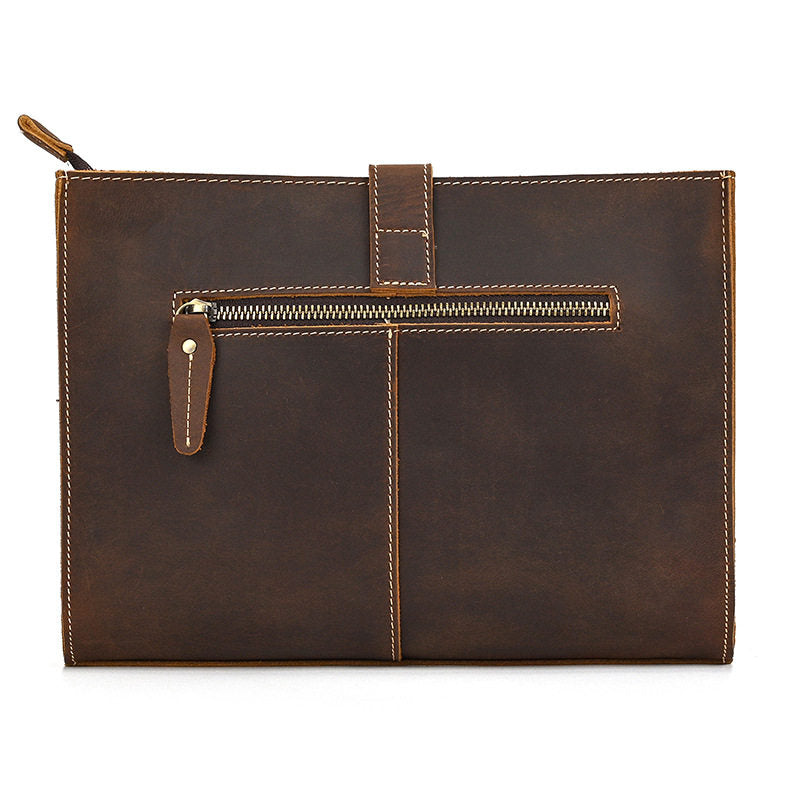 Introducing a masterclass in versatility and style with our Wristlet with Shoulder Strap, a thoughtfully designed accessory that adapts to your every need. Expertly crafted from premium full-grain crazy horse leather, this refined Clutch with Shoulder Strap measures 27cm x 20cm x 6cm, offering the perfect balance of spaciousness and portability. Available in two timeless shades—Classic Brown and Dark Brown—this bag stands out with its unique convertible design: it includes two detachable straps, allowing you to wear it as a classic clutch, a chic shoulder bag, a comfortable crossbody, or a convenient wristlet. The combination of a durable leather wrist loop and an adjustable shoulder strap provides unmatched flexibility for daily wear, work, and travel.