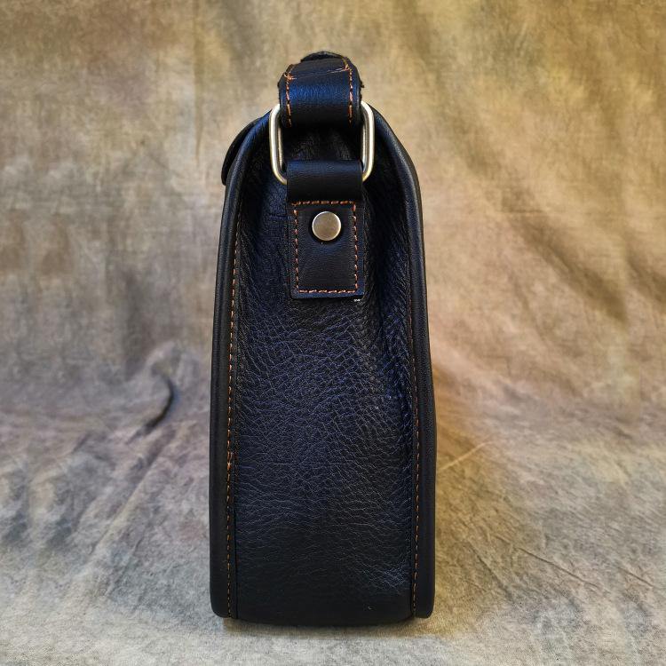 Design: Black Postman Bag Leather Mens 10 inches Small Side Bag Courier Bag IPAD Messenger Bag for Men