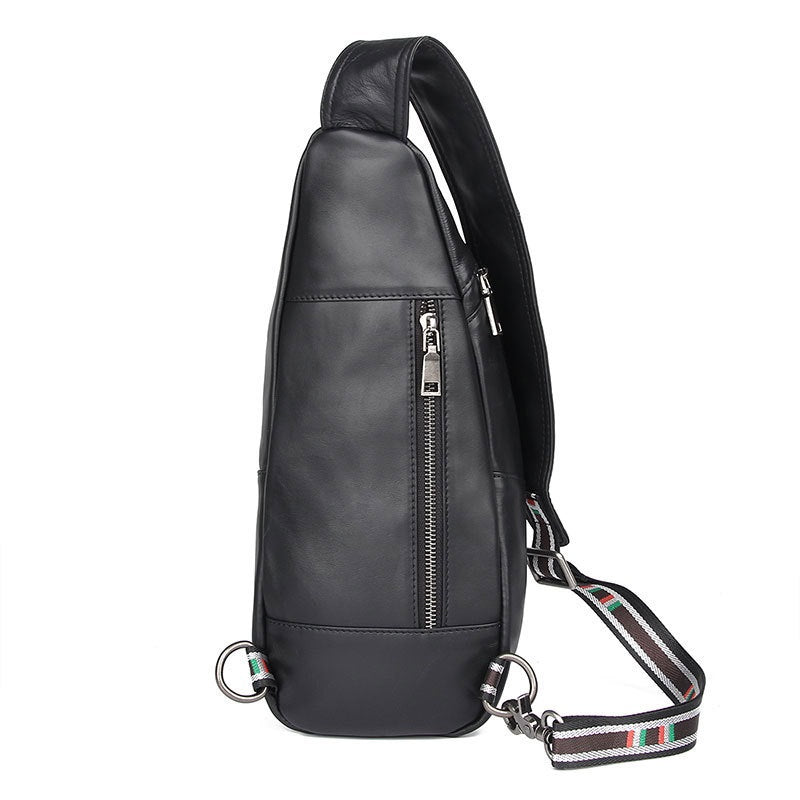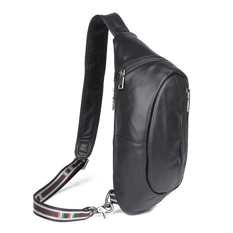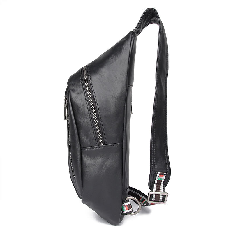 Style: Badass Black Leather Men's 8 inches Sling Bag Chest Bag One shoulder Backpack Sling Bag For Men