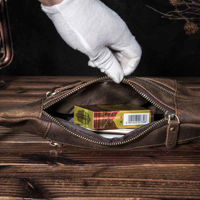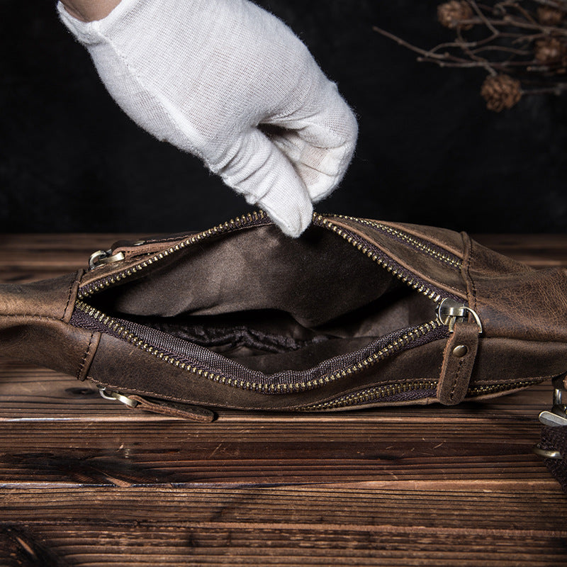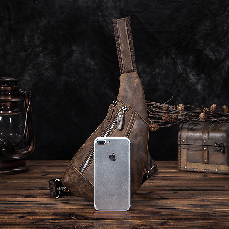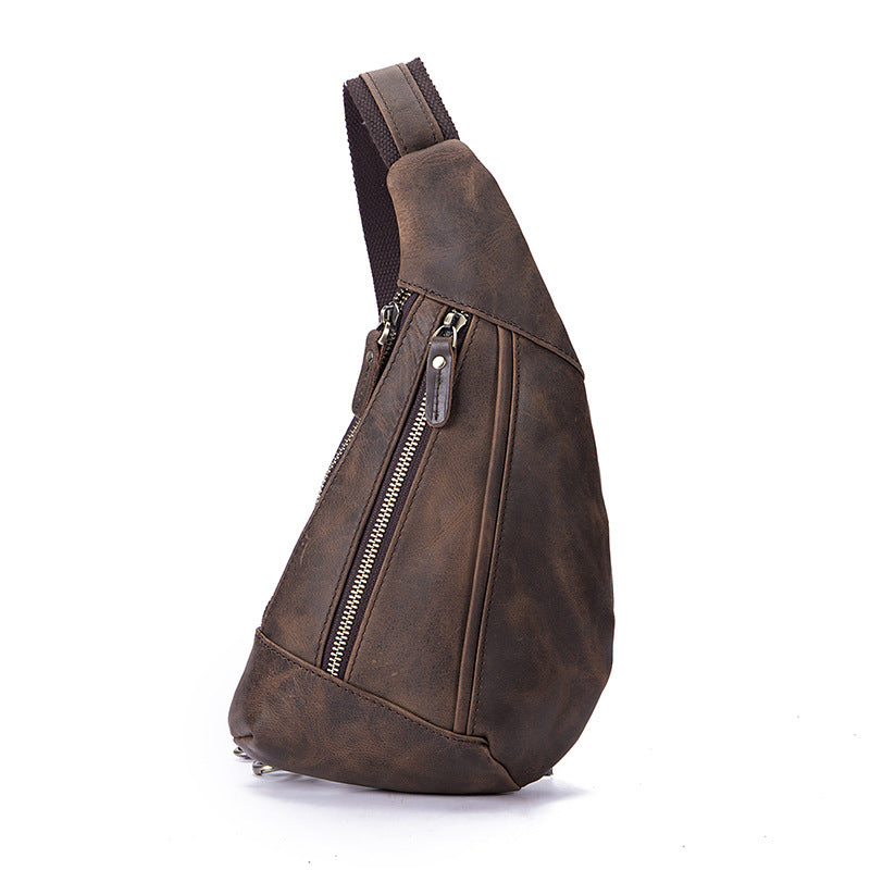 Style: Badass Dark Brown Leather Men's Sling Bag 8-inches Chest Bag Vintage One shoulder Backpack For Men
