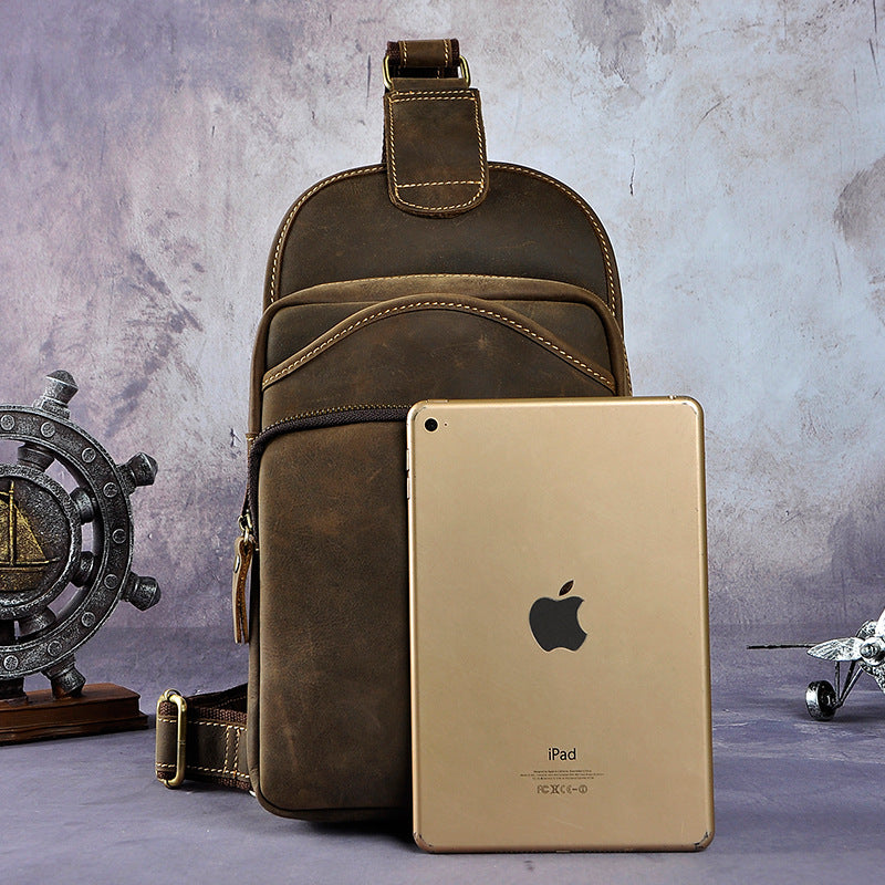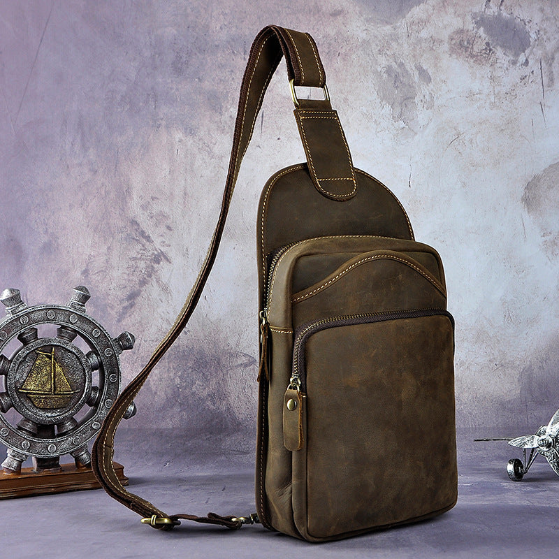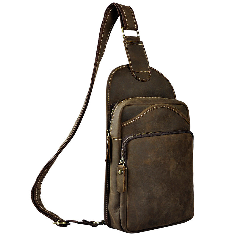 Best Leather Mens Cool Sling Bag Crossbody Bag Chest Bag for men