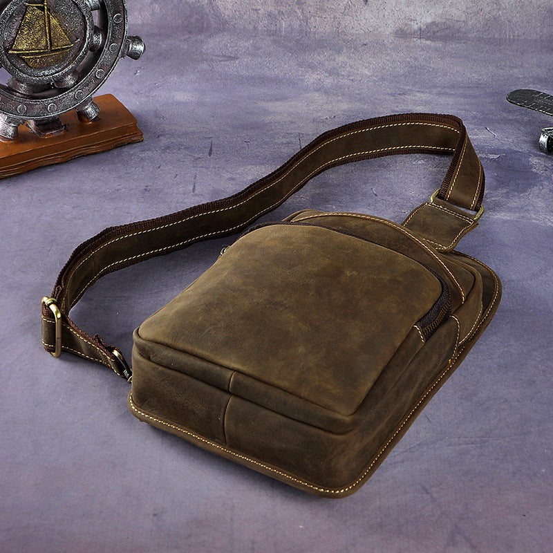 Style: Leather Mens Cool Sling Bag Crossbody Bag Chest Bag for men
