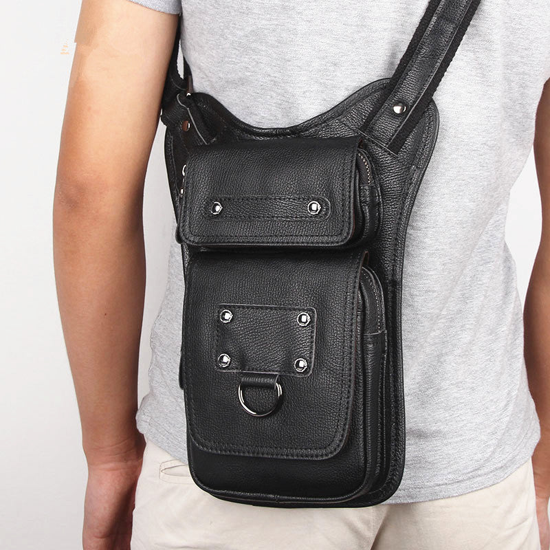 Style: Black Leather Men's Sling Bag Shoulder Bag Chest Bag One Shoulder Backpack For Men