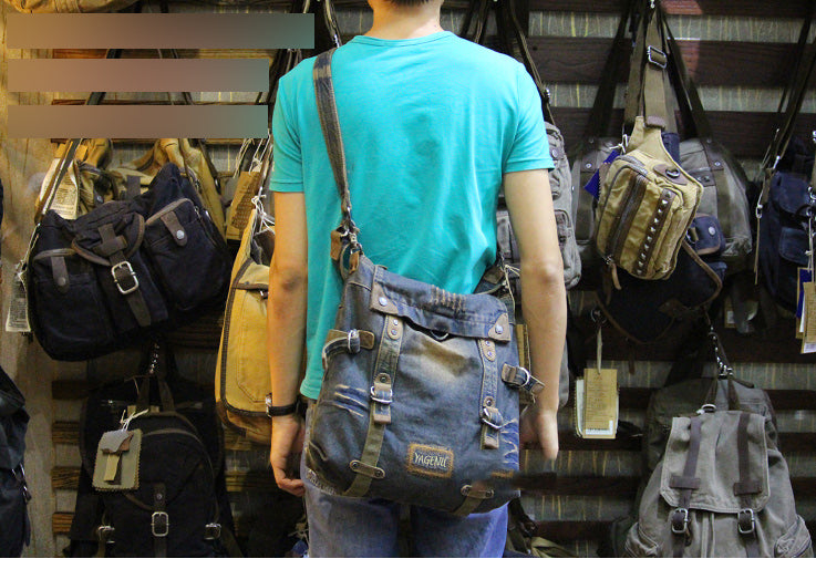 Style: Blue Denim Mens Casual Large Messenger Bags Jean Postman Bag Courier Bag For Men
