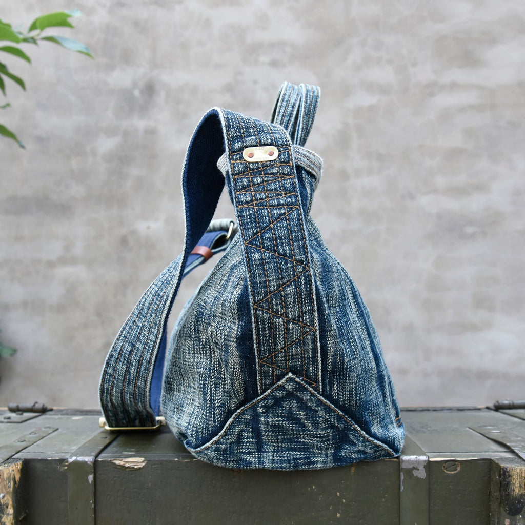 Design: Blue Denim Tote Handbag Washed Denim Tote Bag Stone Washed Denim Tote Shoulder Bag