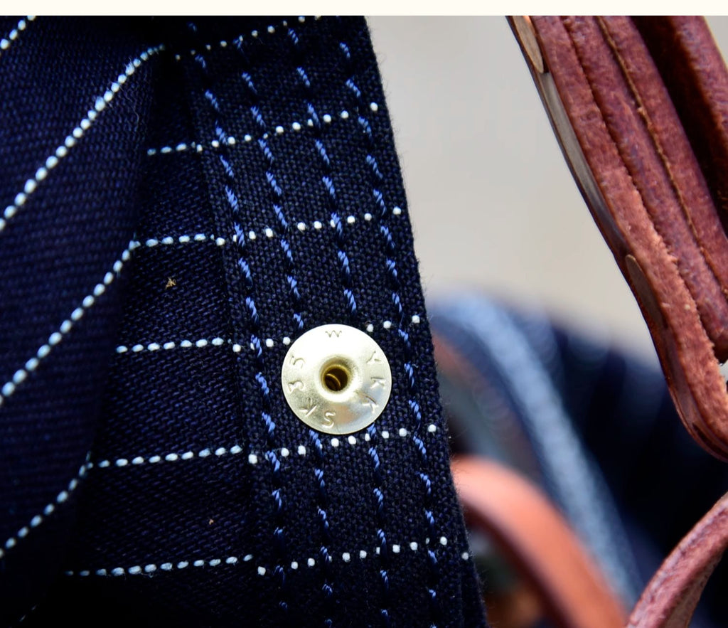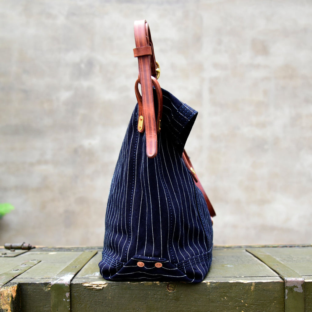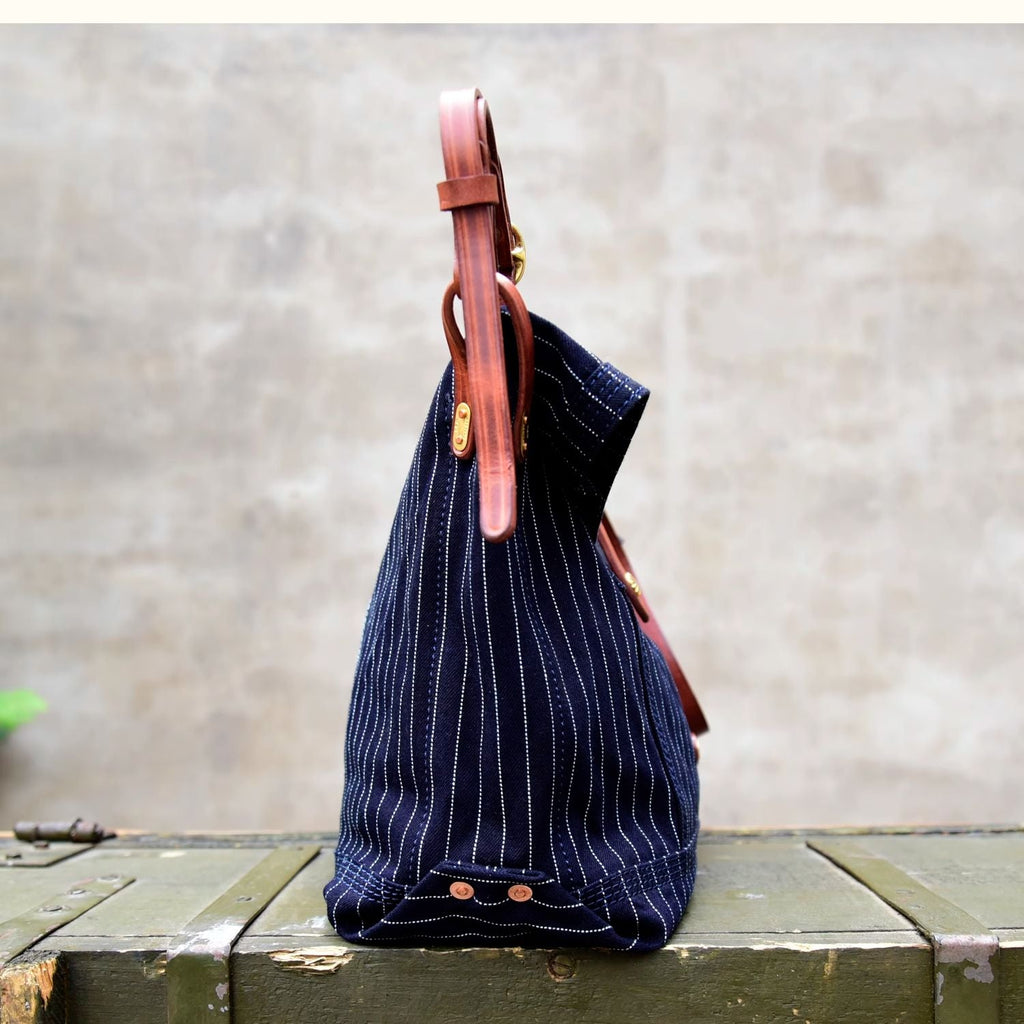 Design: Blue Striped Denim Leather Crossbody Bag for Men Womens Jeans Shoulder Bag Striped Messenger Bag