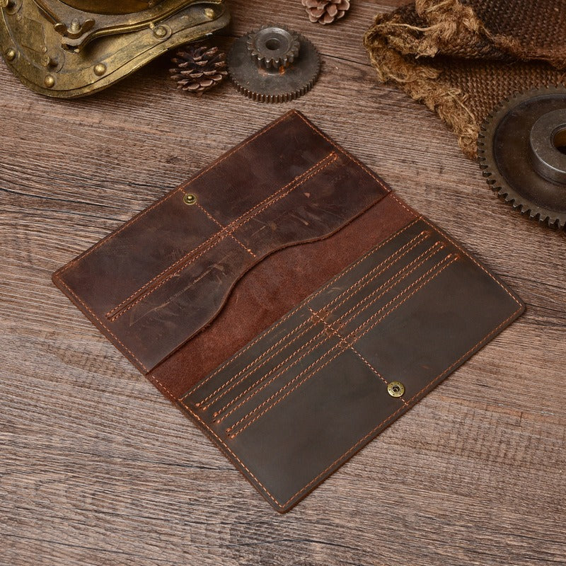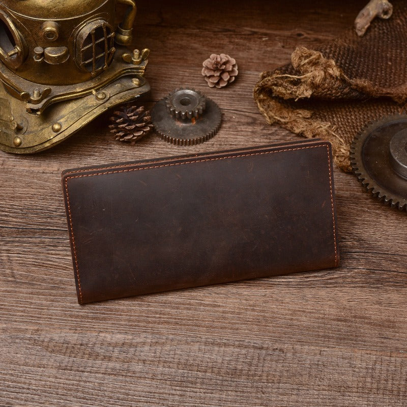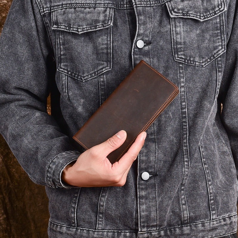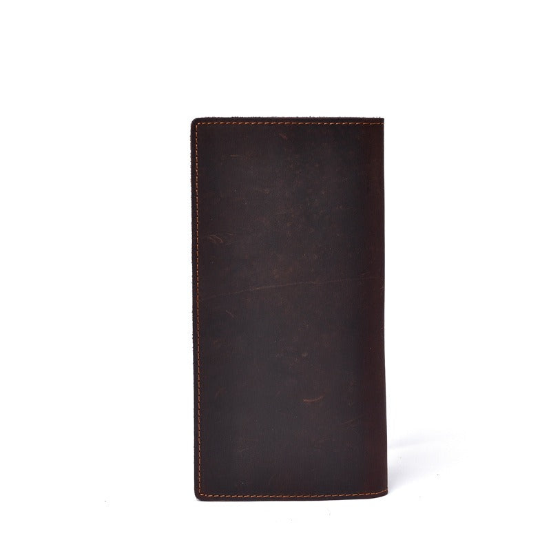 Design: Brown Leather Men's Long Wallet Bifold Brown Slim Front Pocket Wallet For Men