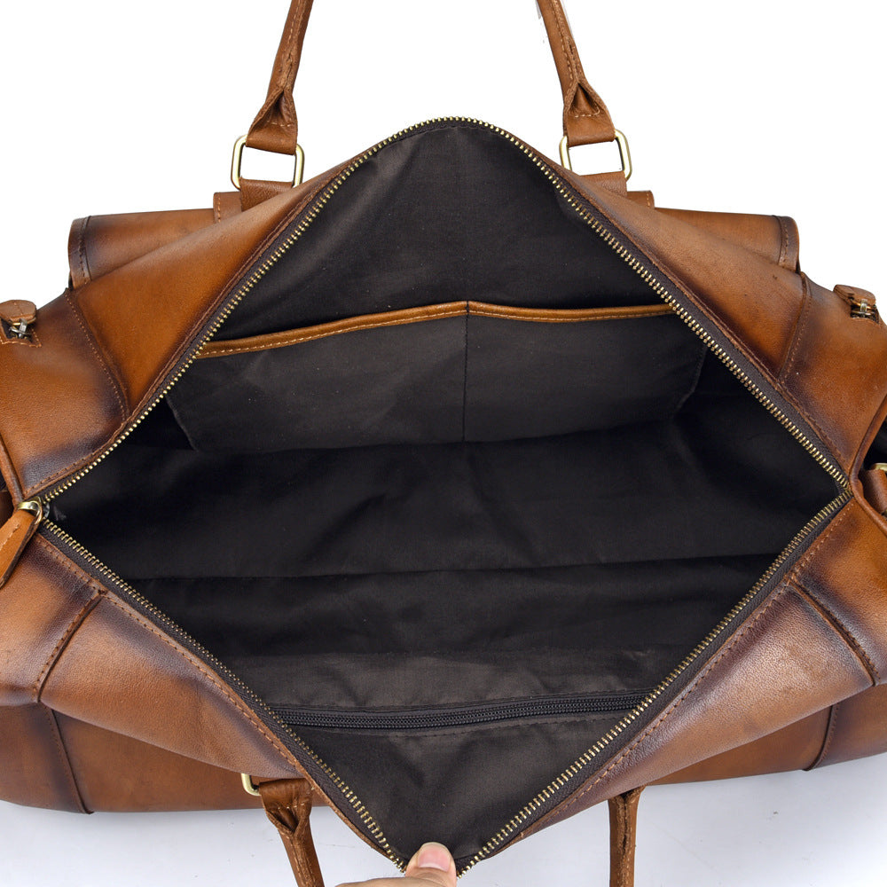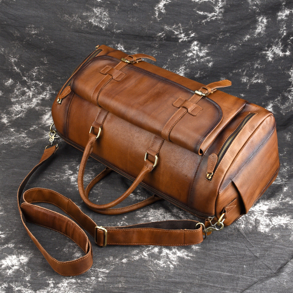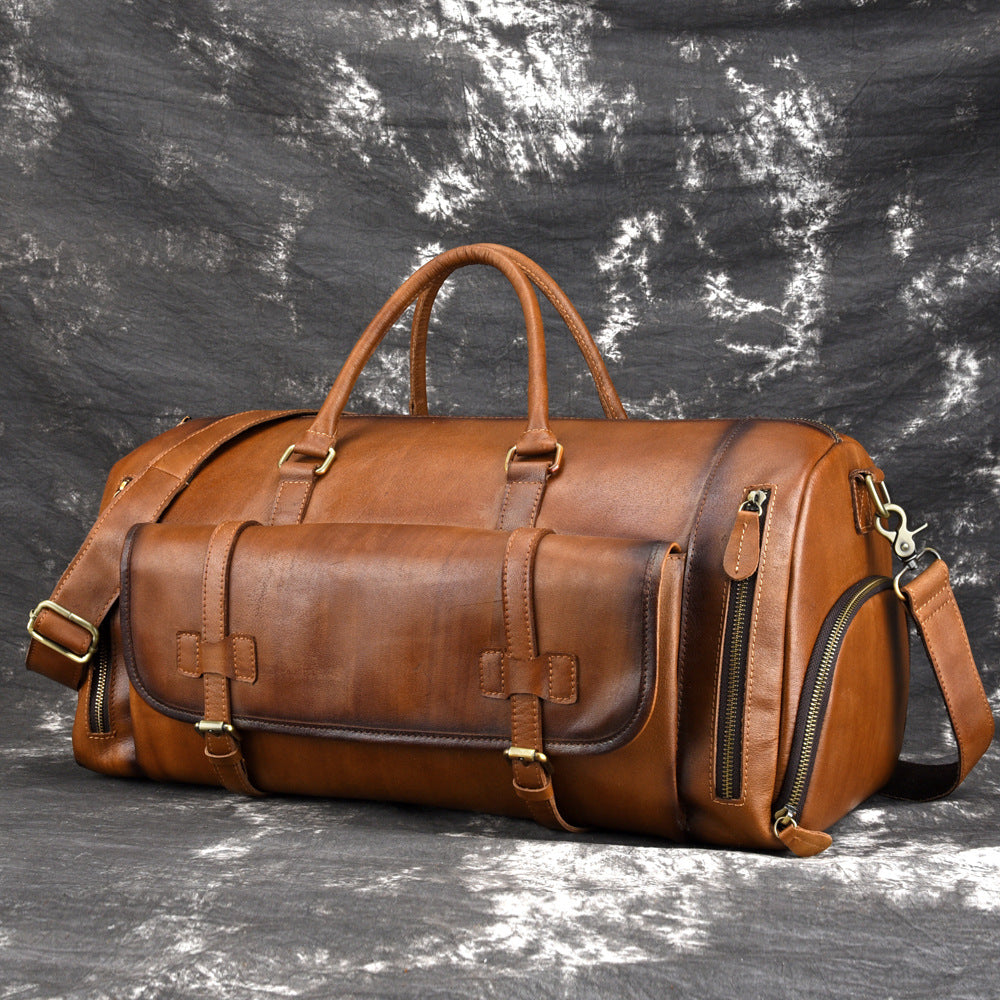 Design: Cool Brown Leather Men's Overnight Bag Travel Bag Duffel Bag Weekender Bag For Men