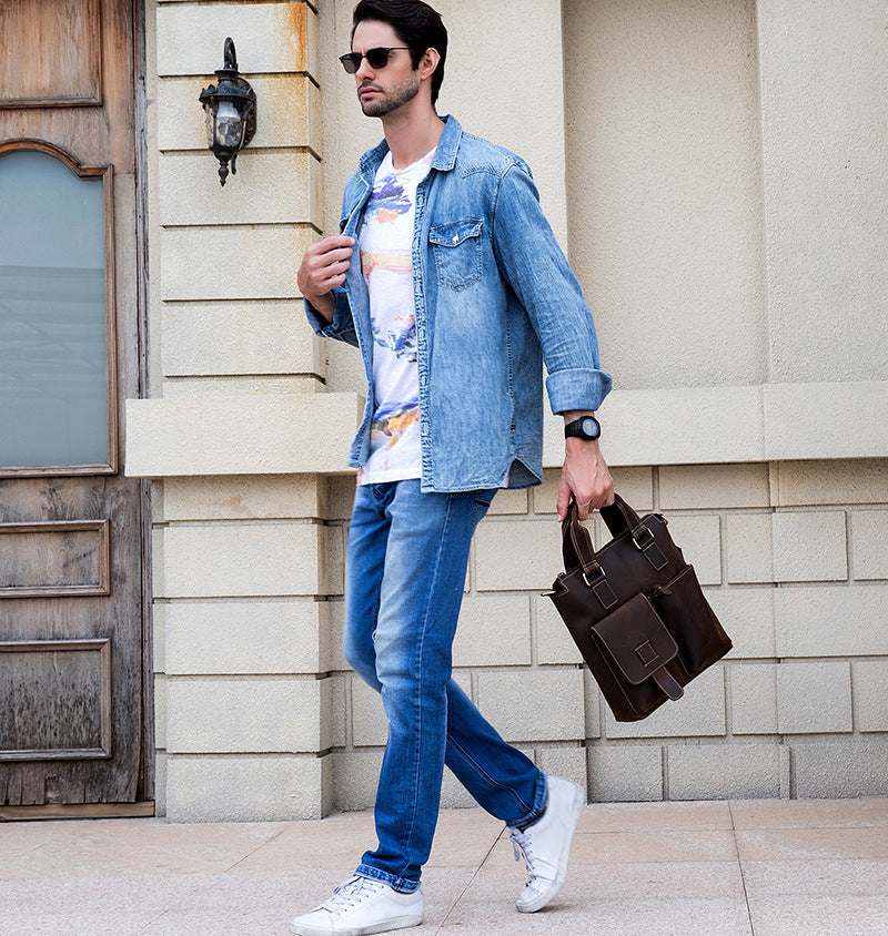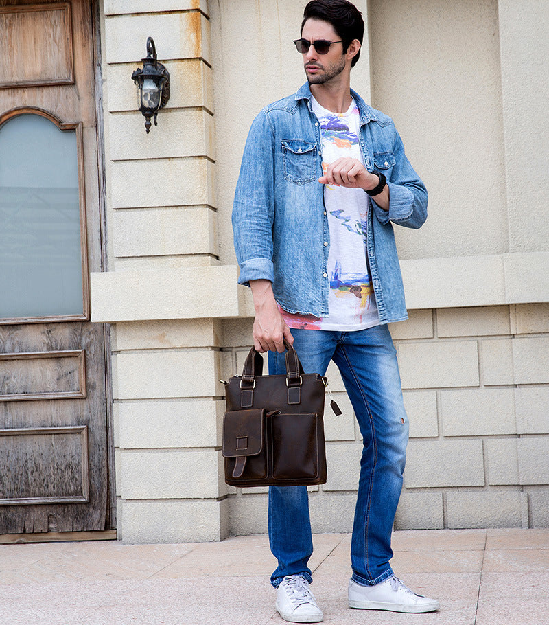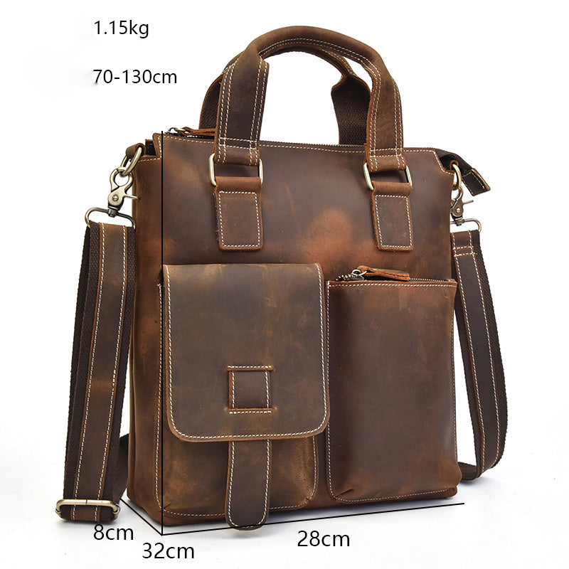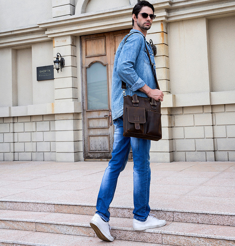 Design: Brown Retro Leather Mens Vintage Handbag Shoulder Bags Side Bag Business Bags For MenOverview: