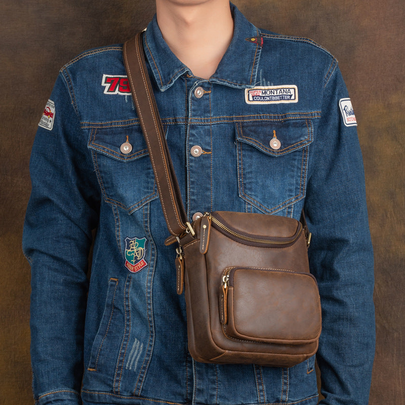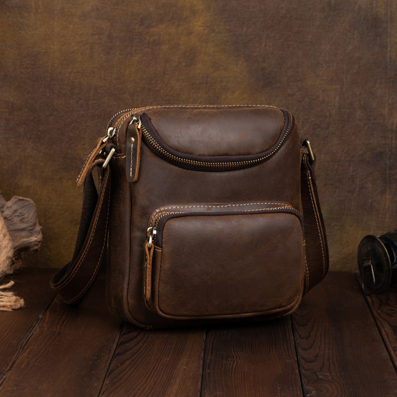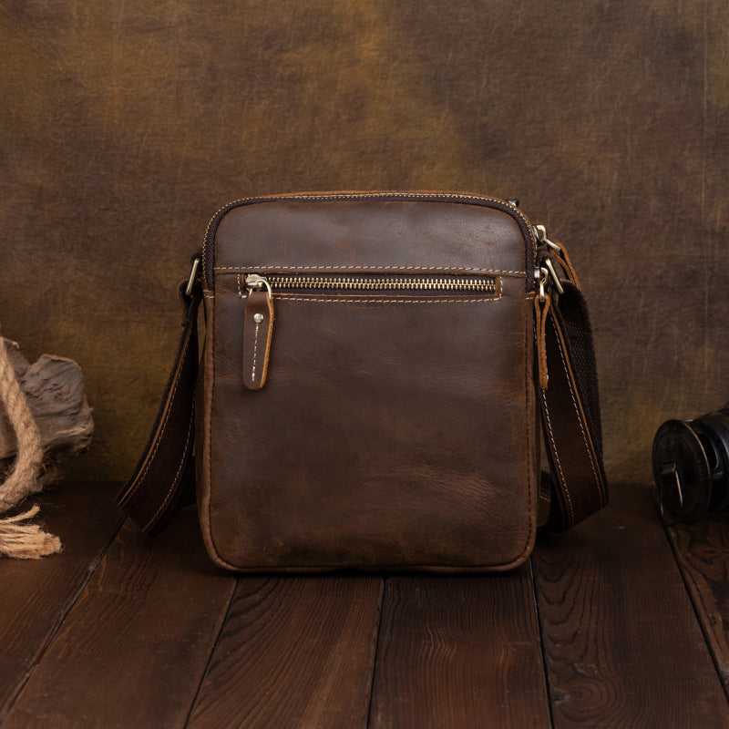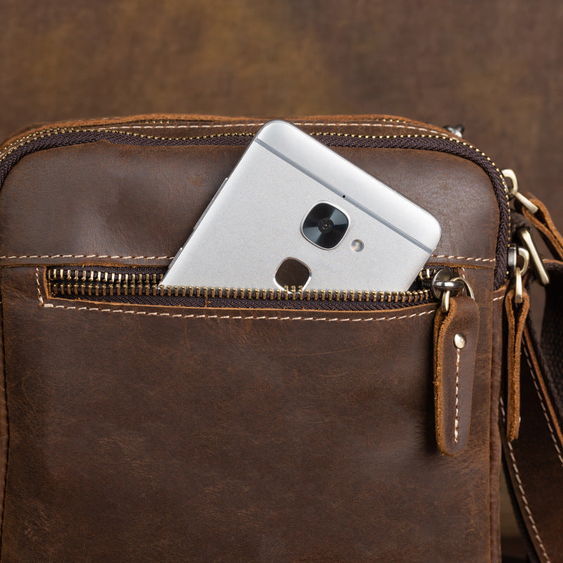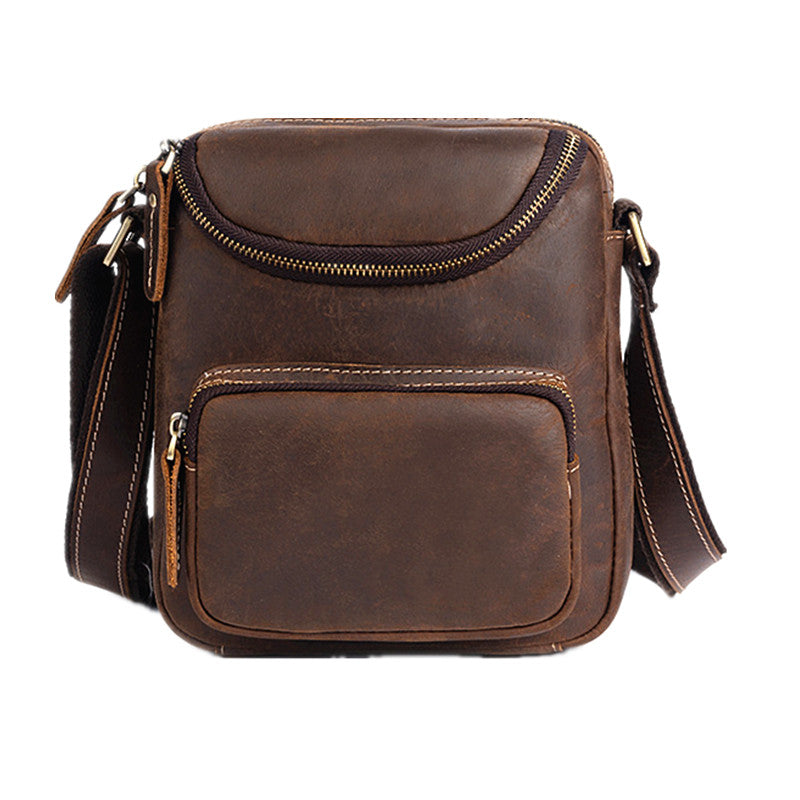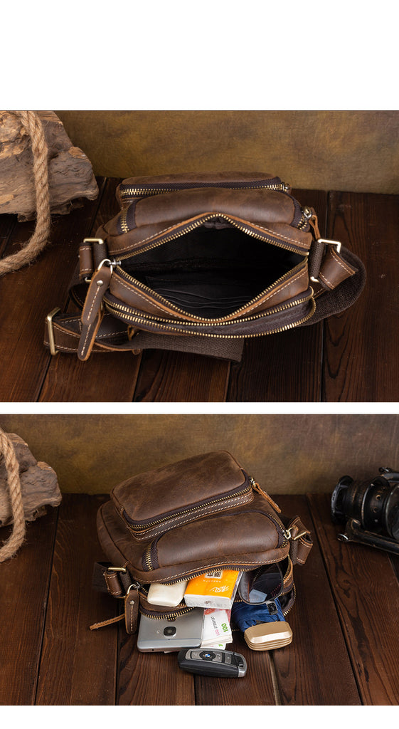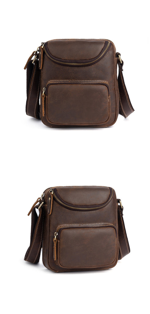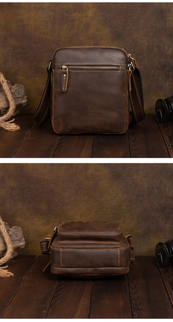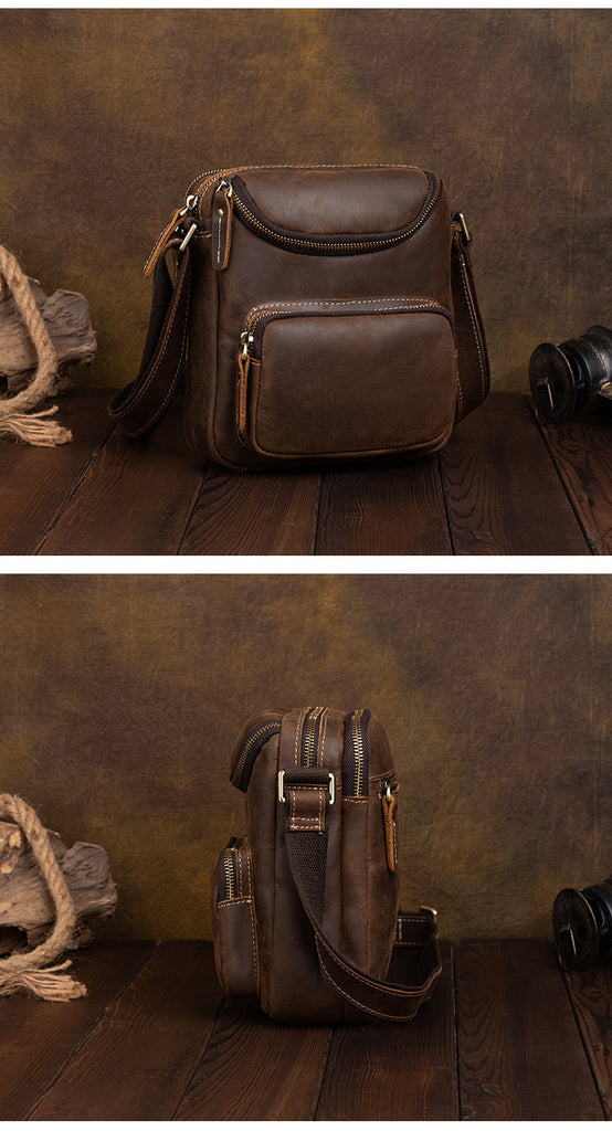Design: Brown Small Leather Men's Vertical Side Bag Best Vertical iPad Messenger Bag For Men